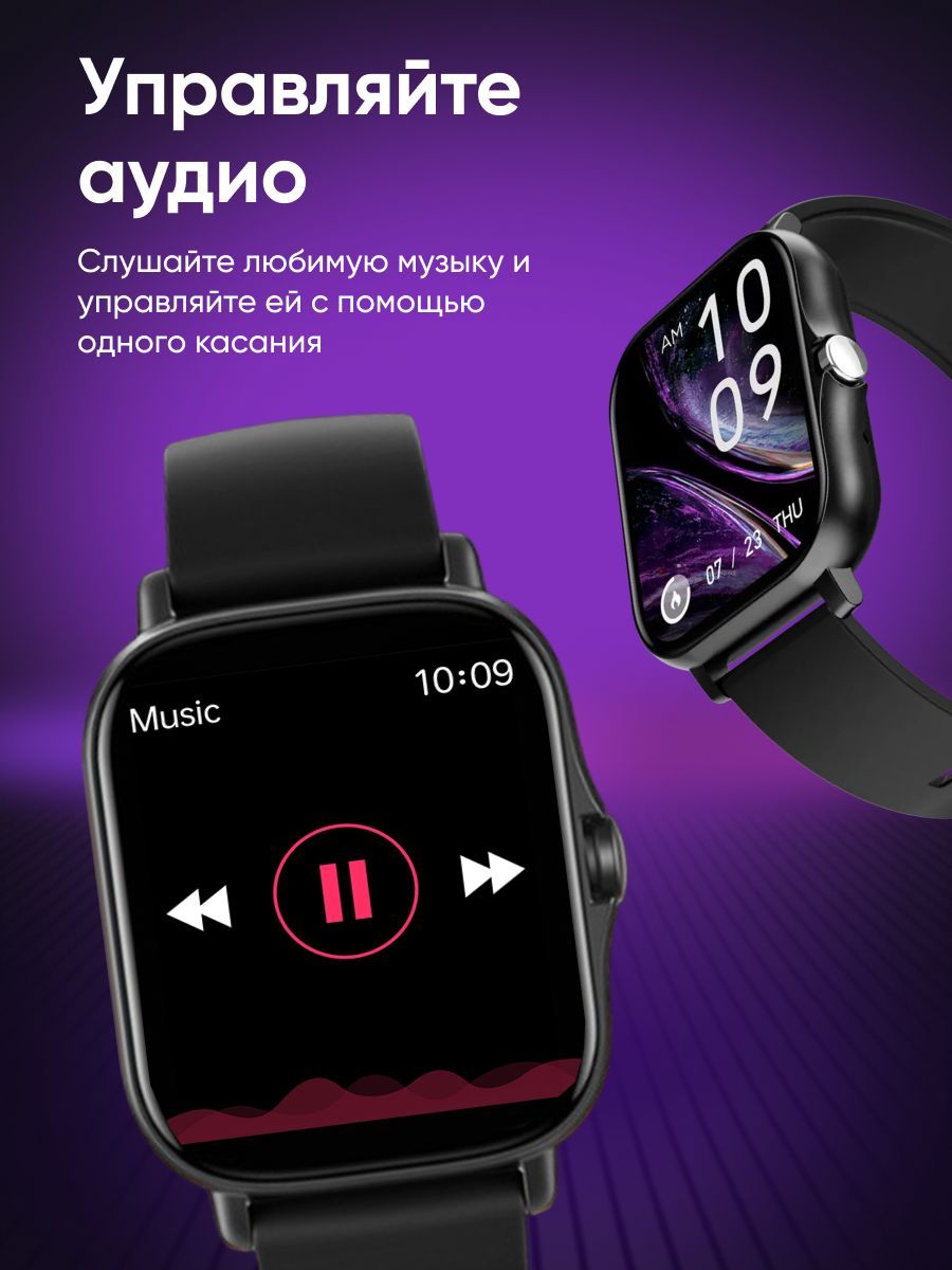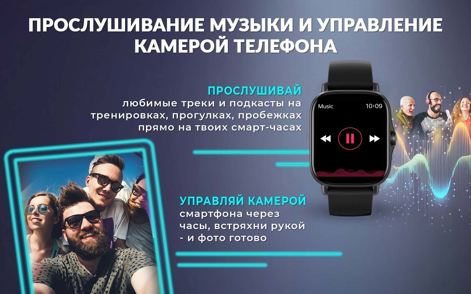 Часы смарт являются отличным подарком на все случаи жизни, ты можешь дарить их с удовольствием. Родные и близкие точно останутся довольны!Управление музыкой, камерой и голосовым помощникомС помощью смарт часов можно управлять плейлистом на телефоне и прослушивать свою любимую музыку прямо через сами часы благодаря встроенному динамику.