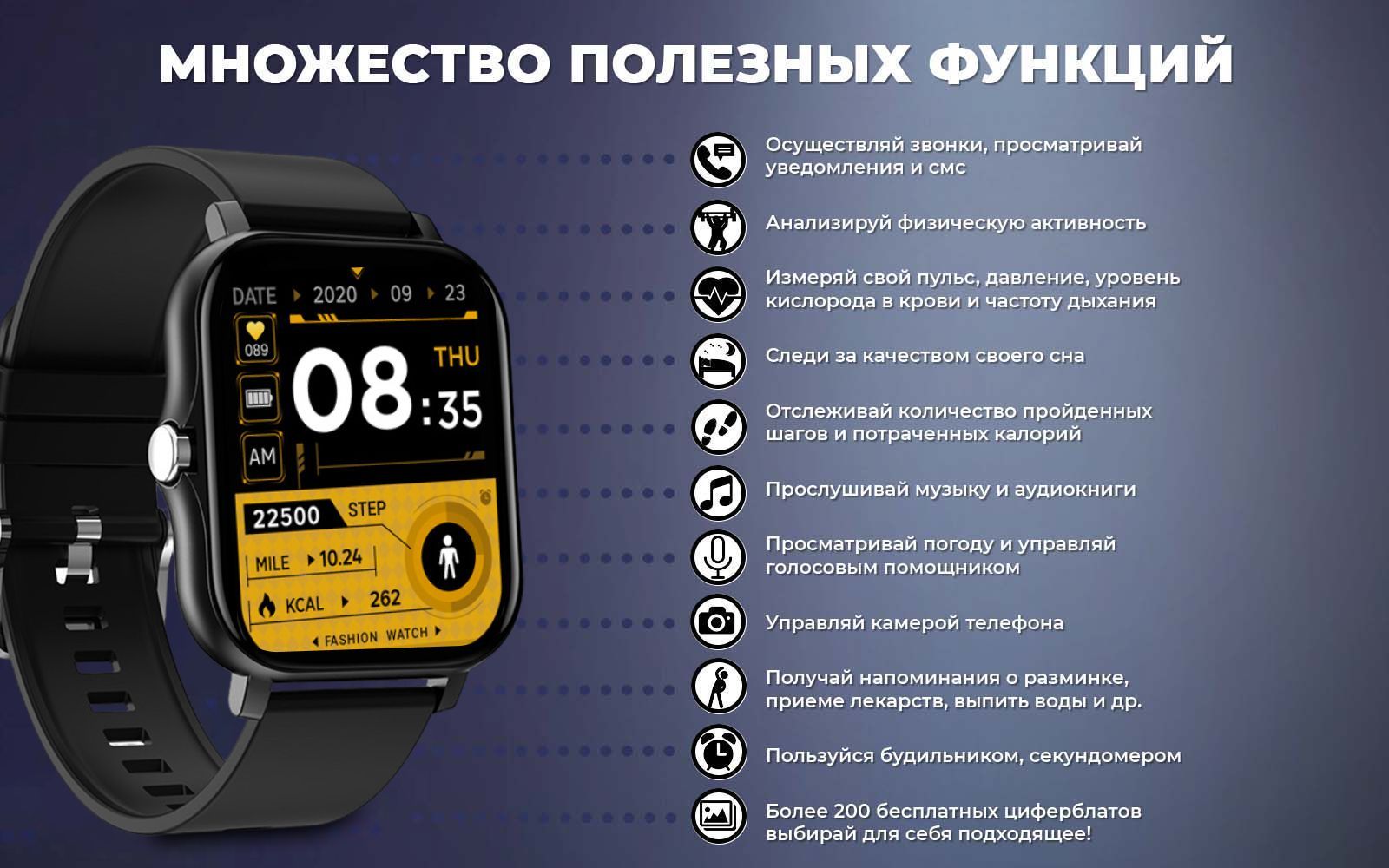 Однако напоминаем, что данный продукт не является медицинским прибором. Медицинские данные и рекомендации, представленные в нем носят исключительно ознакомительный и справочный характер и не могут быть использованы в качестве основы для диагностики или лечения.Порадуй близких и родных!Электронные смарт часы универсальны - это и умные часы мужские, и умные часы женские, и умные часы для детей. Они прекрасно смотрятся на любом запяcтье и являются превосходным дополнительным аксессуаром к твоему образу.