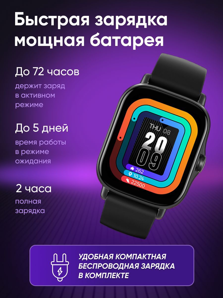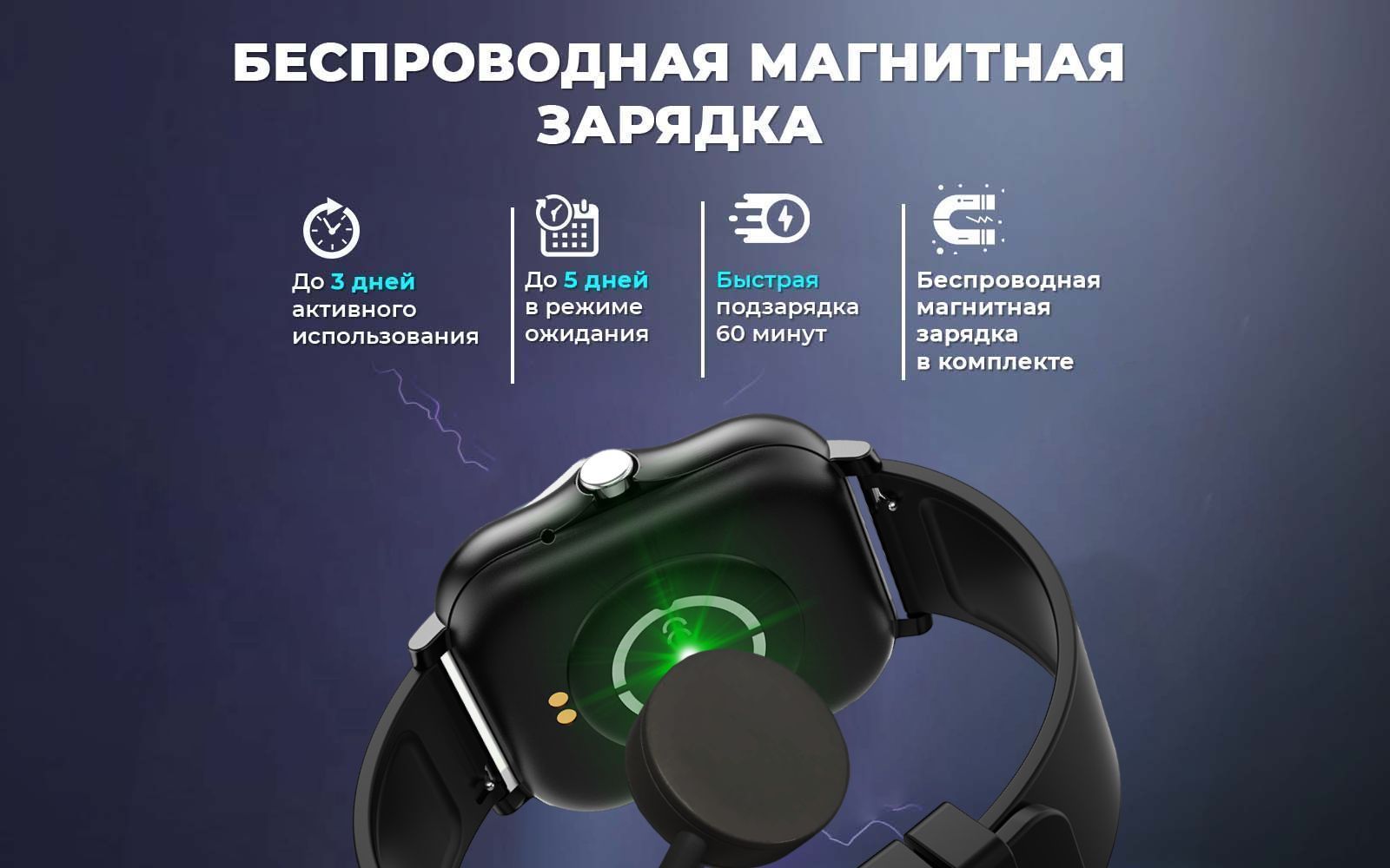 Быстро заряжается, долго держит зарядЧасы электронные наручные оснащены аккумулятором с большой емкостью в 200 мАч и с низким уровнем энергозатрат. Часы без подзарядки работают до 120 часов, в режиме звонка и музыки 10-22 часов. Быстрая зарядка за 2 часа восстановит полный заряд фитнес браслета.Смарт часы - незаменимый помощник в спорте и в фитнесеСмарт часы оснащены датчиком движения, интеллектуальным расчетом калорий и пройденного расстояния, это отличный шагомер браслет.