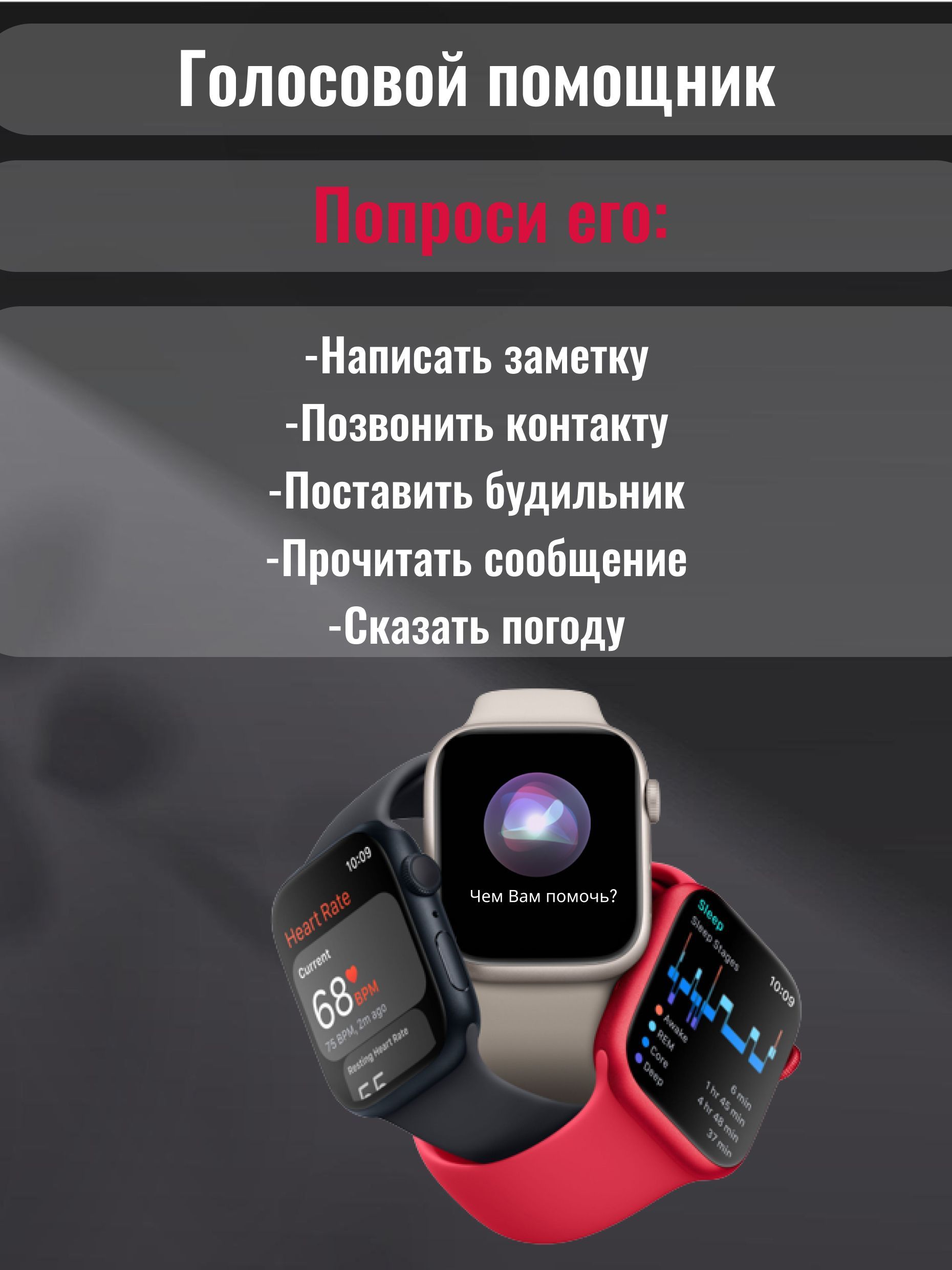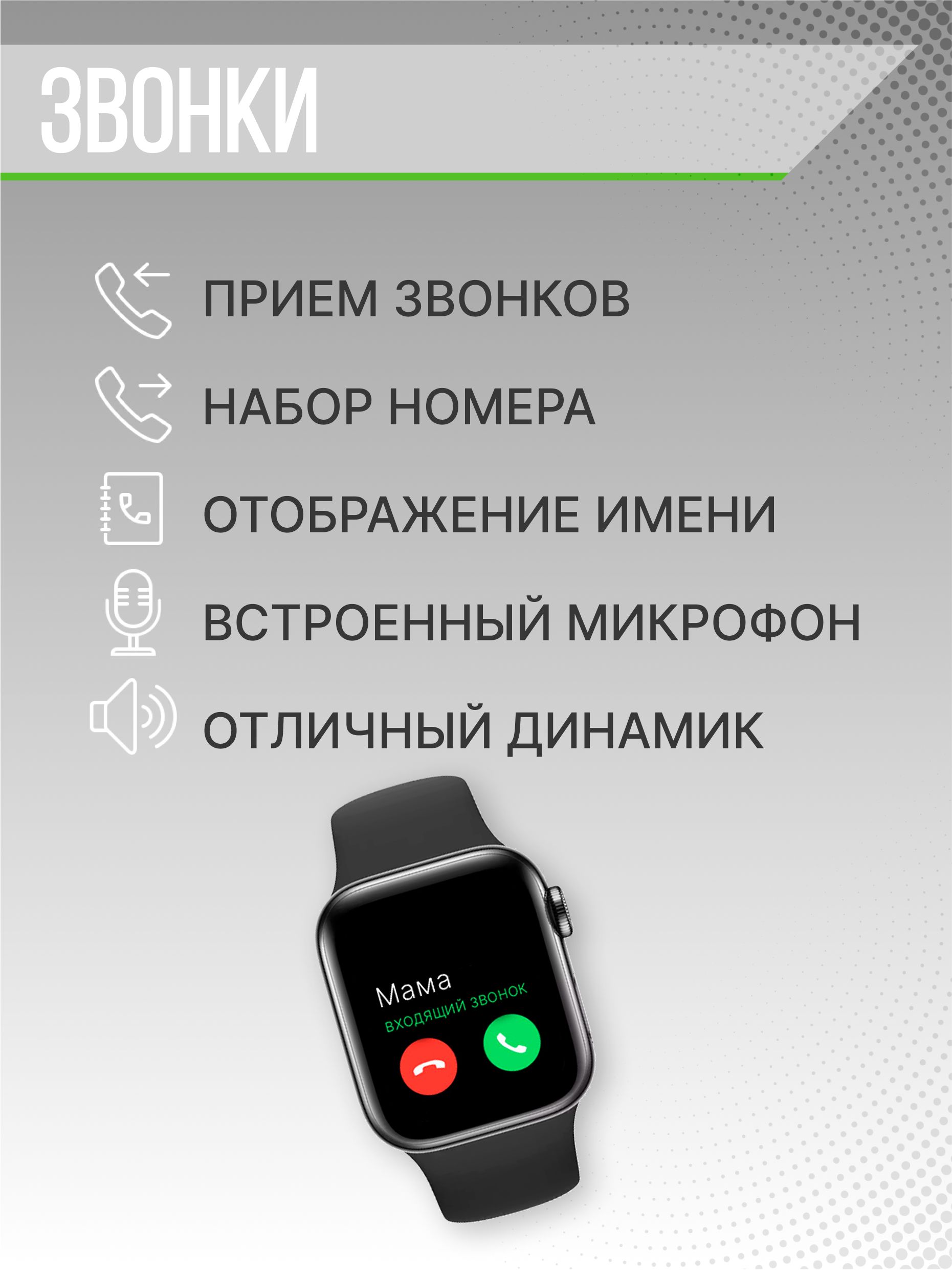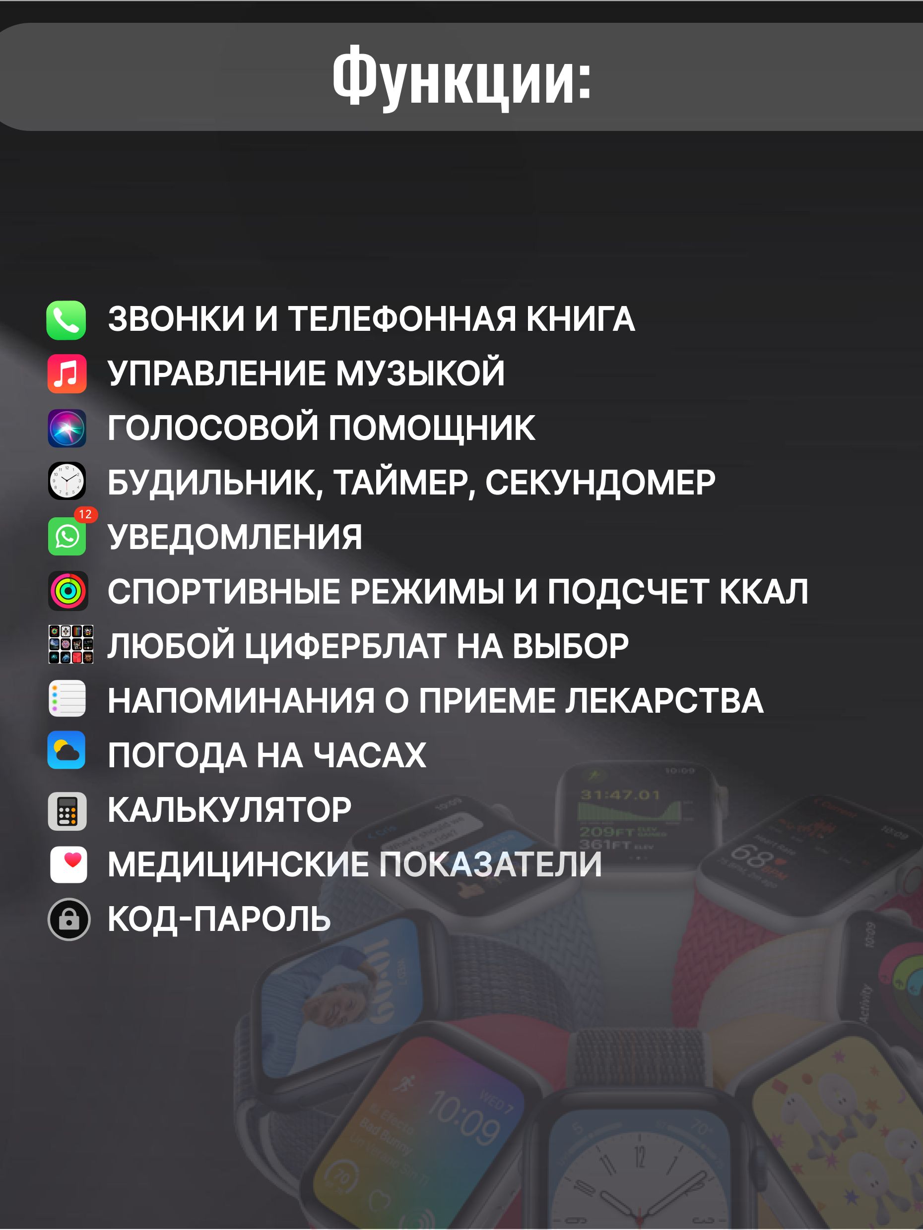 Описание: Модель X8 PRO. Smart часы 8 серии с диагональю 45 мм - незаменимый аксессуар, позволяющий всегда оставаться на связи! Цифровые наручные часы имеют универсальный дизайн, а значит отлично подойдут как для мужчин, так и женщин. В комплекте с наручными часами идет беспроводная зарядка, инструкция и два браслета: силиконовый - для повседневного образа или спортивных тренировок и металлический (миланская петля) - для более делового стиля,. Размер ремешка регулируется по запястью. Электронные умные часы оснащены микрофоном и динамиком, приходят уведомления, управление камерой, мониторинг сна, будильник, звонки, управление музыкой, сообщения, голосовой помощник - все это у вас на руке. Смарт гаджет заботится о вашем здоровье в режиме реального времени: измеряет артериальное давление, мониторит уровень кислорода в крови, контролирует частоту пульса, анализирует качество сна. Но стоит понимать если Вам необходимо точное измерение - необходимо воспользоваться специальным медицинским оборудованием. Смарт часы лишь показывают приблизительные данные. Смарт часы включают в себя: счётчик калорий, шагомер, пульсометр, 12 спортивных режимов, поэтому смело заменят любой фитнес браслет. Детские часы при активном пользовании держат заряд до двух дней, а в режиме ожидания - до 5 дней. Электронный гаджет на руку имеет безрамочный, сенсорный, изогнутый экран диагональю 1,95 дюйма, обеспечивающий насыщенный цвет и высокое разрешение. Часы с браслетом обладают влагозащитой IP67, что оберегает их от влаги и пыли, но не спасает от погружения в воду! Внимание! Здравствуйте! Смарт часы нельзя использовать для глубоких погружений и длительного замачивания в воде. Кроме того, часы не устойчивы к горячей воде, потому что горячий пар воздействует на ремешок, поэтому душ в них также не рекомендуется принимать. Но в часах можно смело мыть руки, попасть под дождь, уронить их на небольшую глубину и быстро достать, забрызгать жидкостью. Сенсорные смарт часы подключаются к телефону через Bluetooth 5.0 и выше с помощью приложения Wearfit Pro, которое доступно для IOS (айос) и Android (андроид). Smart watch 8 послужат отличным подарком на День Рождения, 14 февраля, 8 марта, и просто подарок для любимой или любимого, а также ребенку. Подарок к 1 сентября.