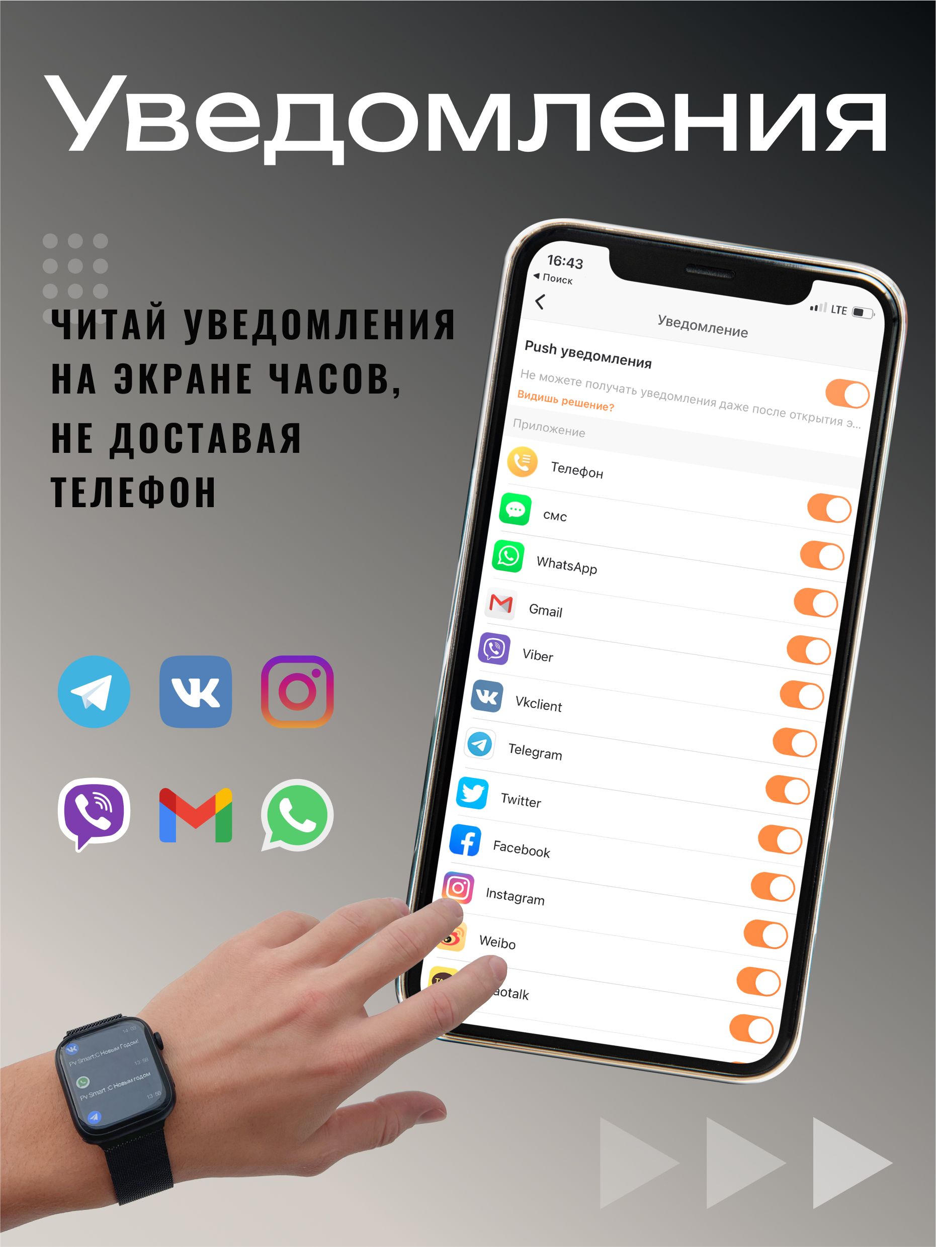 Оповещения Уведомления звонков и сообщений из социальный сетей