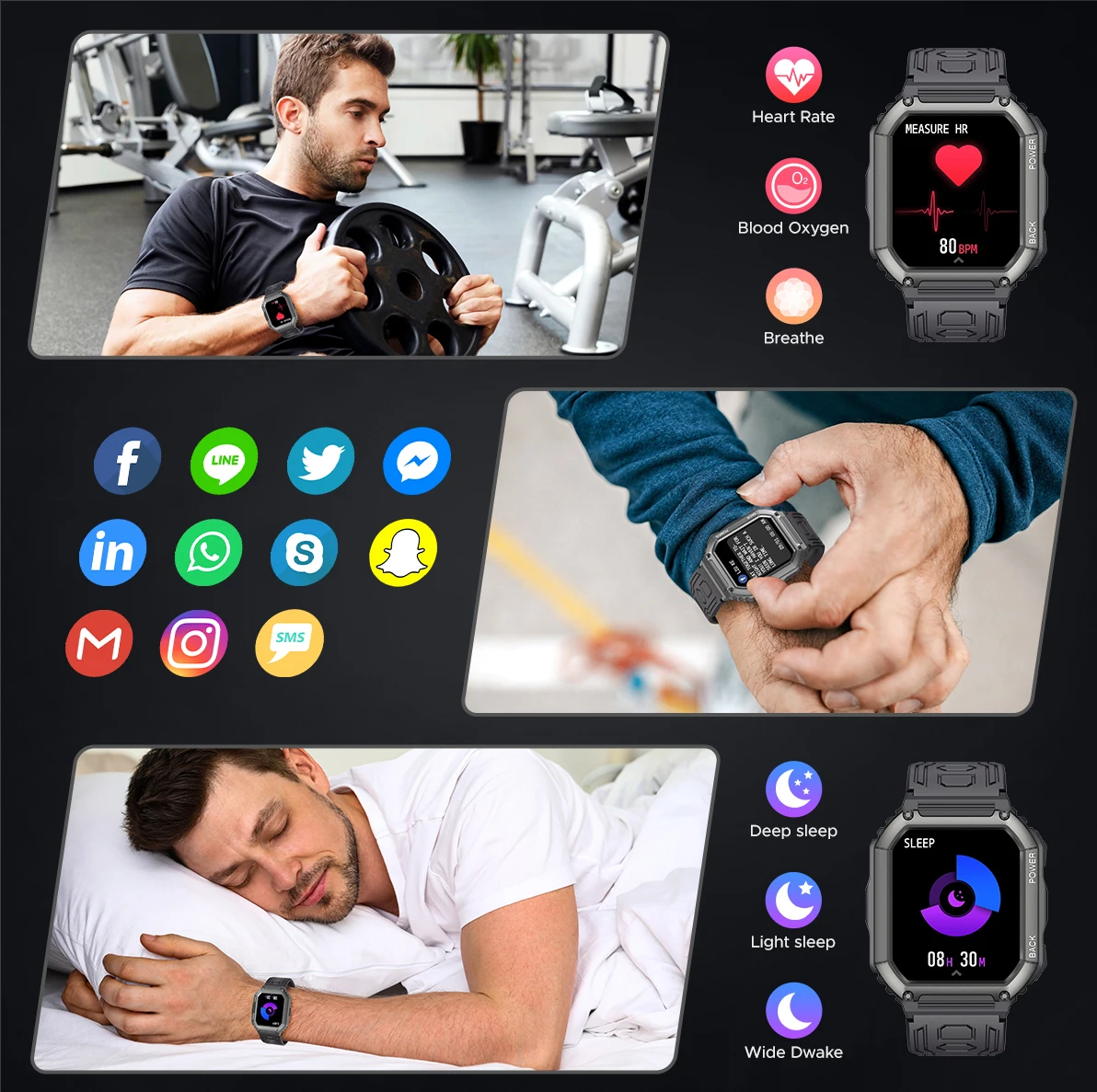 * Мониторинг здоровья: Bluetooth-вызов, пульс/артериальное давление/кислород в крови/мониторинг сна