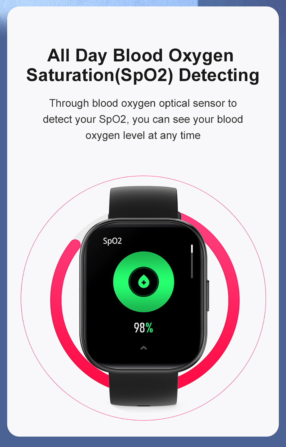 Монитор сердечного ритма 24/7, датчик кислорода в крови, трекер сна, дыхание, напоминание о питье воды, напоминание о движении, физиологический цикл женщин, приложение для поддержки здоровья.
