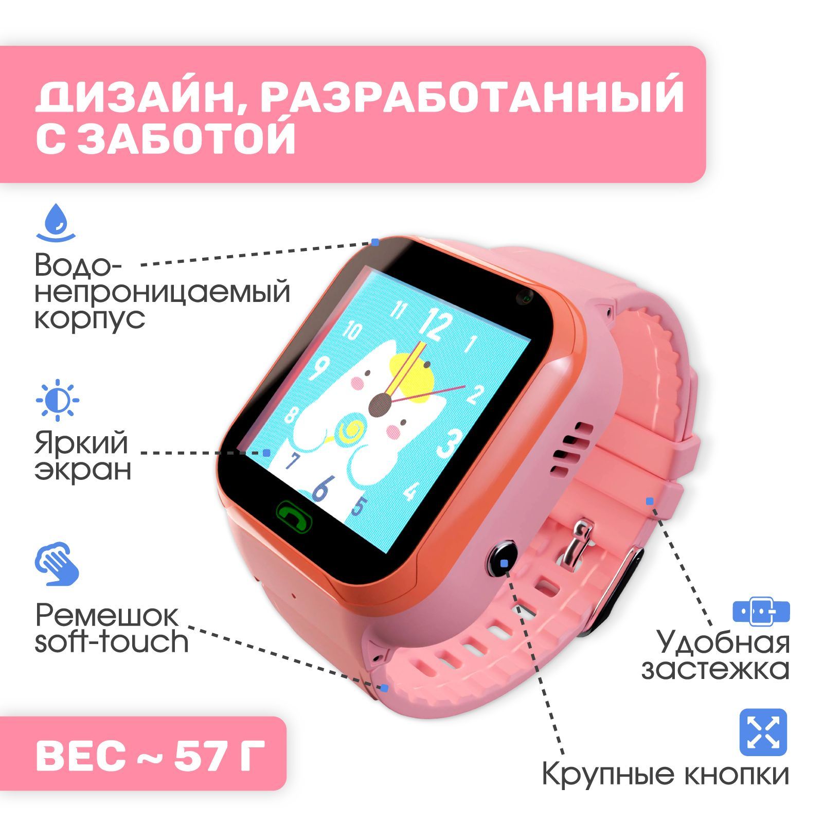 Смарт часы детские с GPS и телефоном / Умные наручные аксессуары для девочек с силиконовым ремешком / Фитнес браслет с сим-картой для детей
