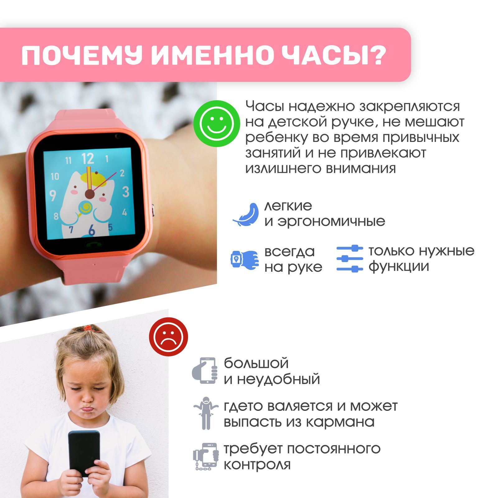 Описание: Умные часы - это стильный и многофункциональный аксессуар на руку, специально разработанный для детей и их родителей, предлагающий широкий спектр возможностей. Детские часы обеспечивают удобное удаленное управление расписанием и функцией телефона, позволяя родным оставаться на связи с ребенком в любое время. Одной из главных особенностей этого гаджета является его геолокационная функция, которая позволяет родственникам всегда знать, где находится ребенок. Это особенно полезно, когда семилетка самостоятельно идет в школу или занимается после уроков. Наручные смарт часы с сим-картой обеспечивают возможность совершать SOS-звонки в случае опасности, а также осуществлять видео вызовы близким людям из электронной книги контактов. Дизайн наручного аксессуара продуман до мелочей и разработан с заботой о детях. Они имеют яркий экран с крупными кнопками, что облегчает их использование. Корпус прочный и водонепроницаемый, а ремешок выполнен из материала soft touch для комфортной посадки на руку. Часики с gps для девочек и мальчиков легкие по весу, имеют встроенный будильник и игры, которые способствуют развитию интеллекта, логики и мышления. Они сочетают в себе функциональность, безопасность и стильный внешний вид, являются надежным спутником для детей и их родителей.