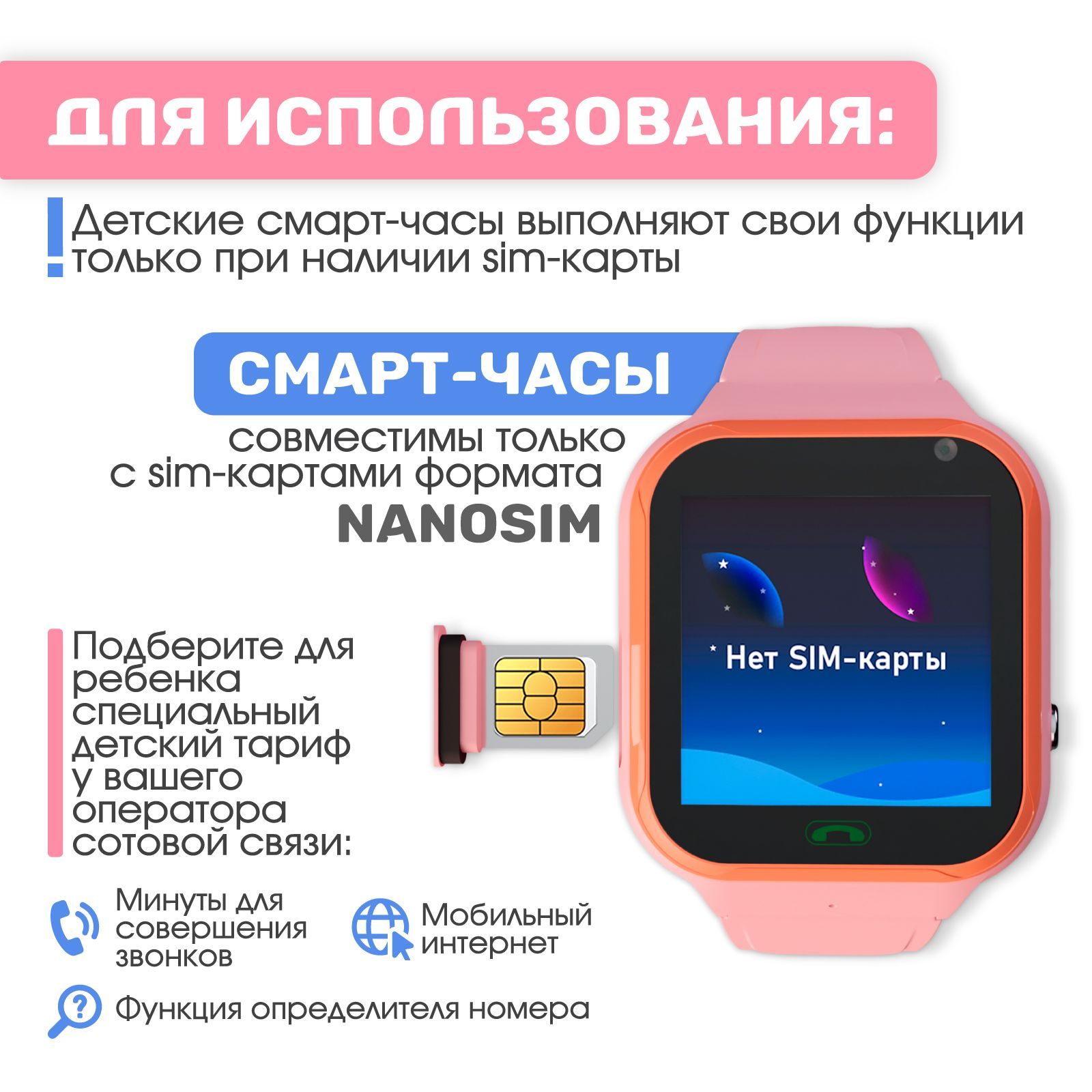Дополнительные функции: Звонки с помощью телефона, Кнопка экстренного вызова, Слот для SIM