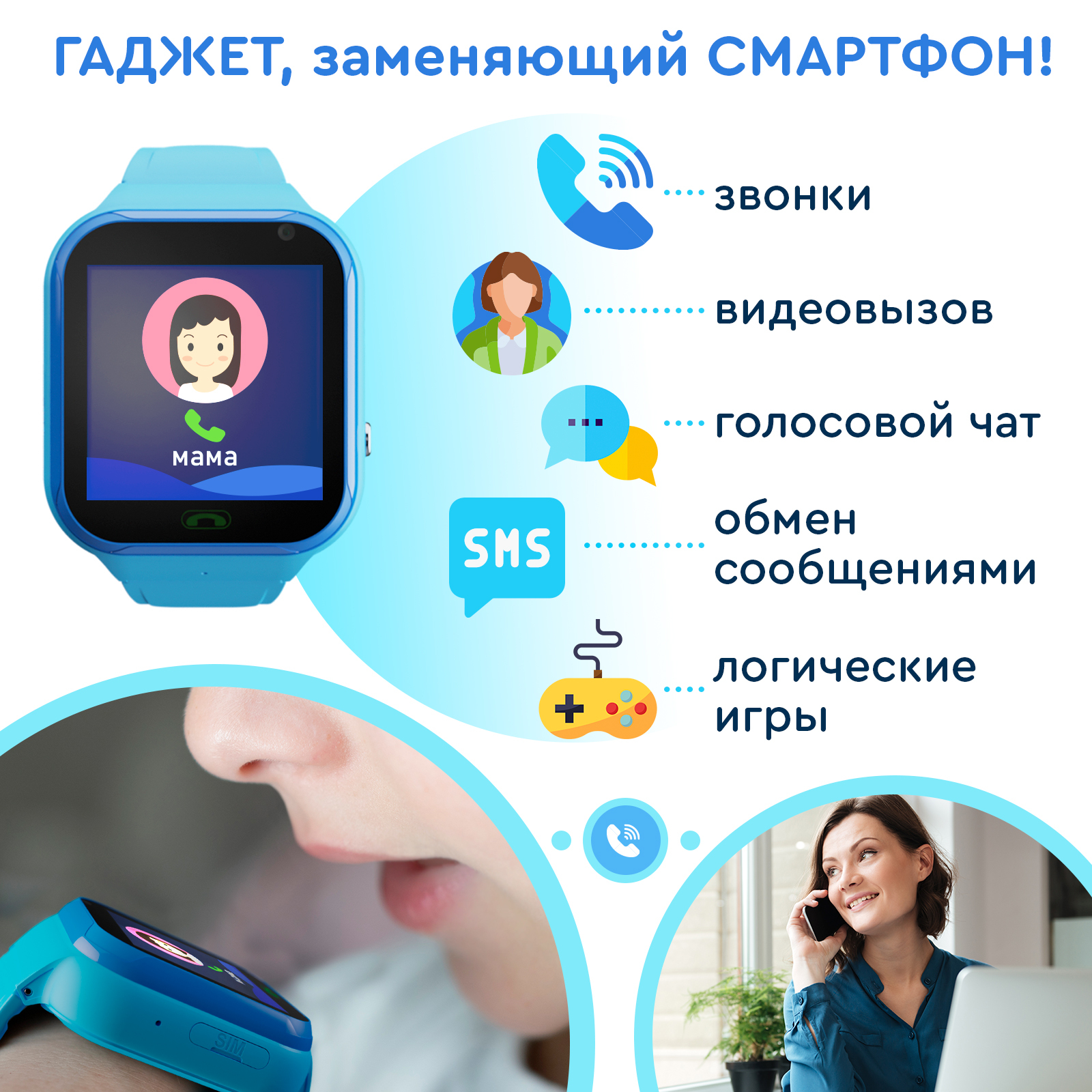 Описание: Умные часы - это стильный и многофункциональный аксессуар на руку, специально разработанный для детей и их родителей, предлагающий широкий спектр возможностей. Детские часы обеспечивают удобное удаленное управление расписанием и функцией телефона, позволяя родным оставаться на связи с ребенком в любое время. Одной из главных особенностей этого гаджета является его геолокационная функция, которая позволяет родственникам всегда знать, где находится ребенок. Это особенно полезно, когда семилетка самостоятельно идет в школу или занимается после уроков. Наручные смарт часы с сим-картой обеспечивают возможность совершать SOS-звонки в случае опасности, а также осуществлять видео вызовы близким людям из электронной книги контактов. Дизайн наручного аксессуара продуман до мелочей и разработан с заботой о детях. Они имеют яркий экран с крупными кнопками, что облегчает их использование. Корпус прочный и водонепроницаемый, а ремешок выполнен из материала soft touch для комфортной посадки на руку. Часики с gps для девочек и мальчиков легкие по весу, имеют встроенный будильник и игры, которые способствуют развитию интеллекта, логики и мышления. Они сочетают в себе функциональность, безопасность и стильный внешний вид, являются надежным спутником для детей и их родителей.