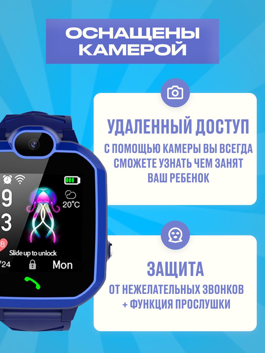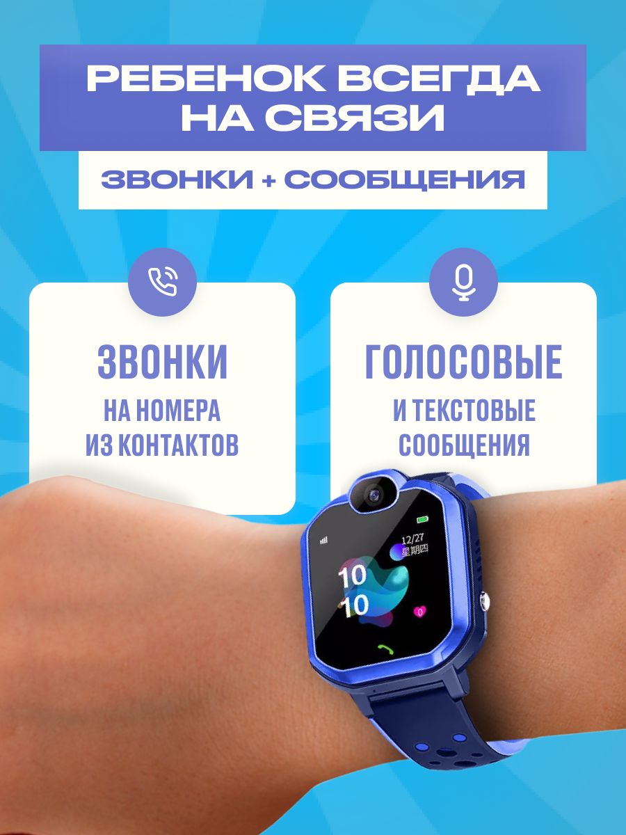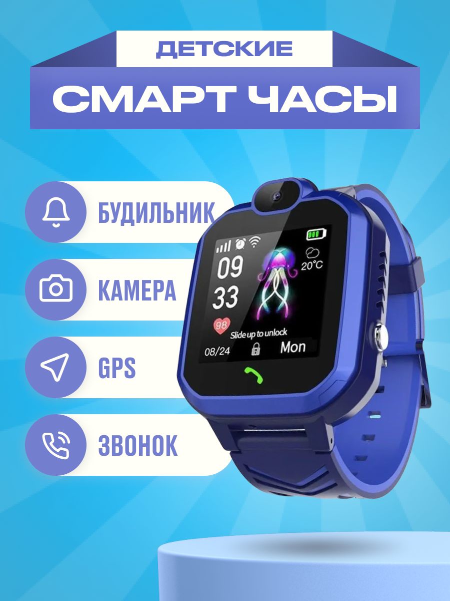 Смарт часы детские с GPS, камерой и SIM картой / Smart Watch H1 / Цвет синий / SIM карта / Умные часы с GPS и LBS / Камера / Синие часы для детей с камерой, телефоном, сим картой, кнопкой SOS, будильником