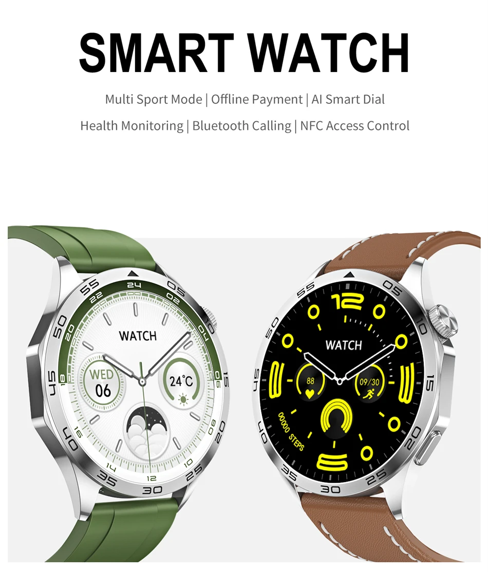 Мужские Смарт-часы оснащены системой контроля доступа NFC AMOLED 466*466 HD-экран, чтобы всегда отображать время, которое может обеспечивать мониторинг сердечного ритма, звонки Bluetooth и другие функции.