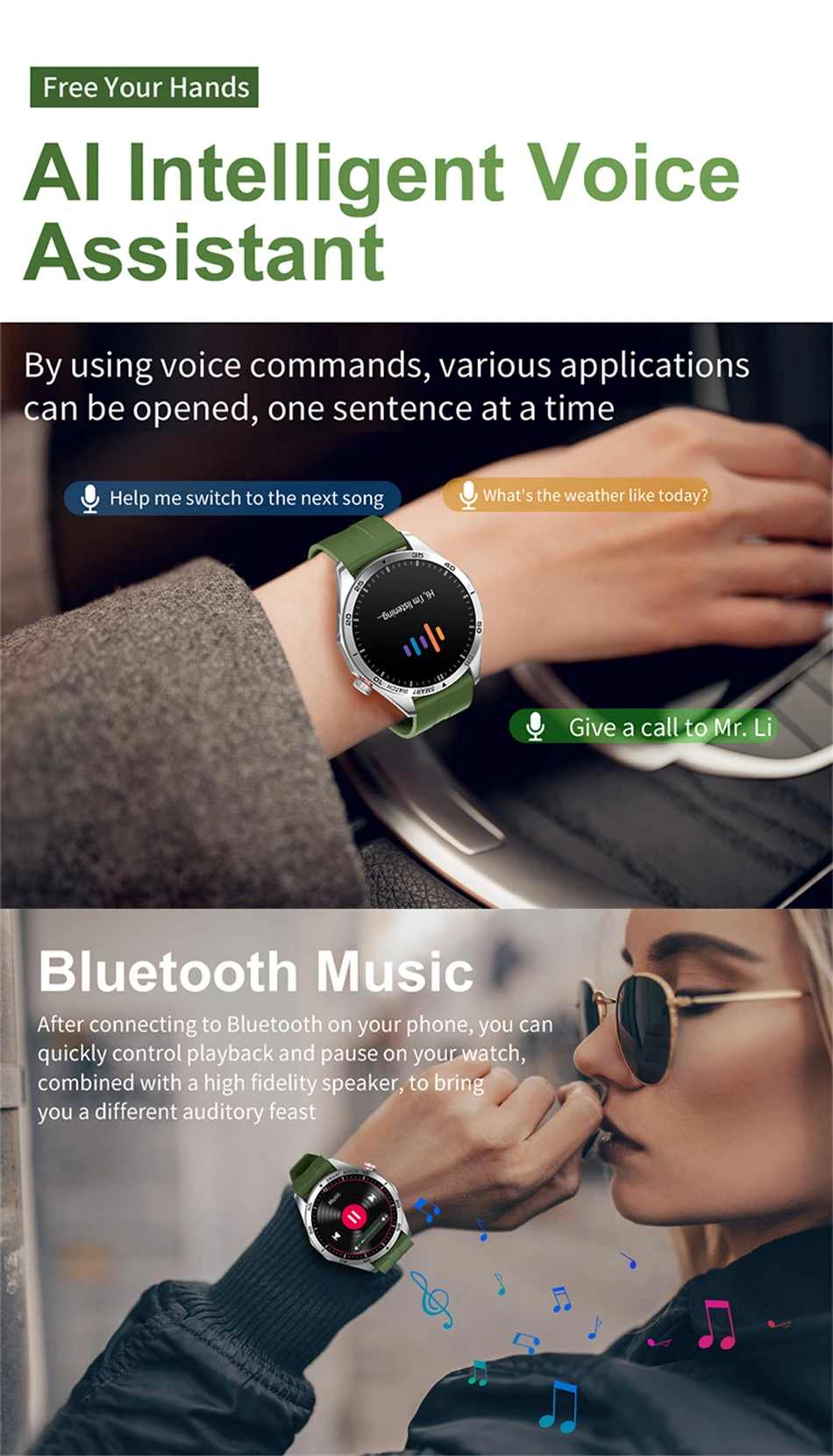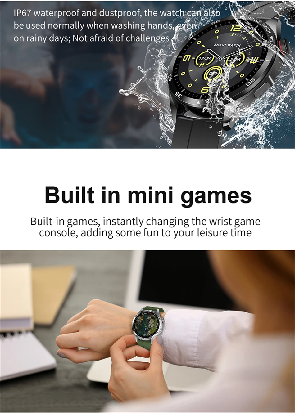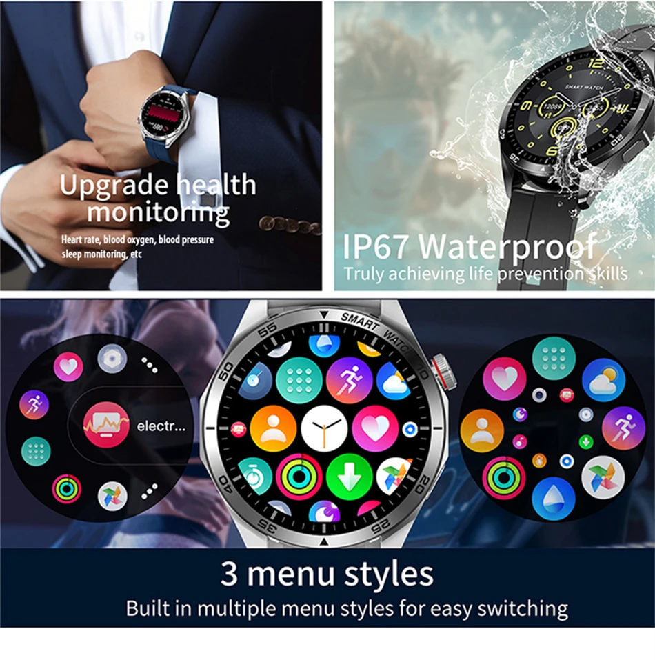Основные функции: вызов Bluetooth, ЭКГ + PPG, запись упражнений (шагомер, расстояние, расчет калорий), режим упражнений, нажатие сообщения, хранение информации, монитор сердечного ритма, монитор сна, измерение артериального давления, измерение насыщения кислородом, секундомер, управление камерой, управление музыкой.