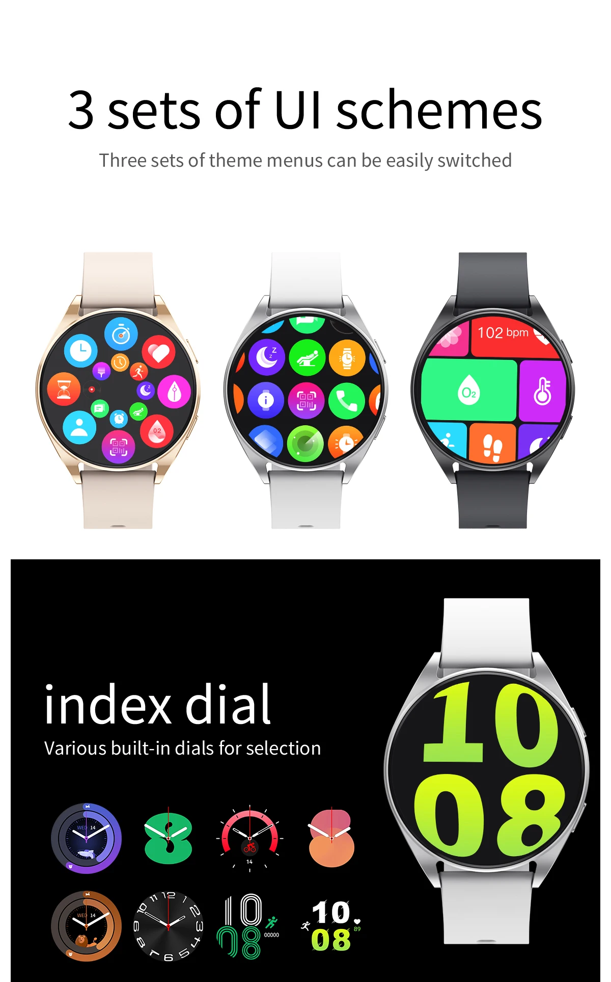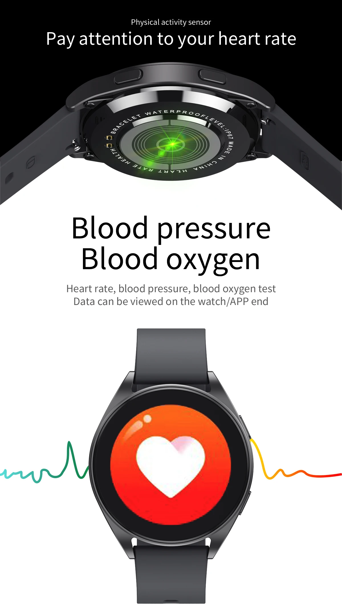 Основные функции: ответ на звонки, осуществление звонков, Мониторинг частоты сердечных сокращений/кислорода в крови/артериального давления, калькулятор, отображение времени/календаря, подсчет шагов, расстояние, калории, погода, воспроизведение музыки по Bluetooth, мониторинг сна, напоминание о звонках, SMS-напоминание, напоминания о сообщениях в социальных сетях APP, напоминания о будильнике, напоминания о сидячем положении, поверните запястье, чтобы сделать экран ярче, Мульти-спортивные режимы, поиск браслетов, поиск мобильных телефонов, Удаленная съемка, переключение с несколькими дисками, настраиваемый фон, регулировка яркости и т. д.