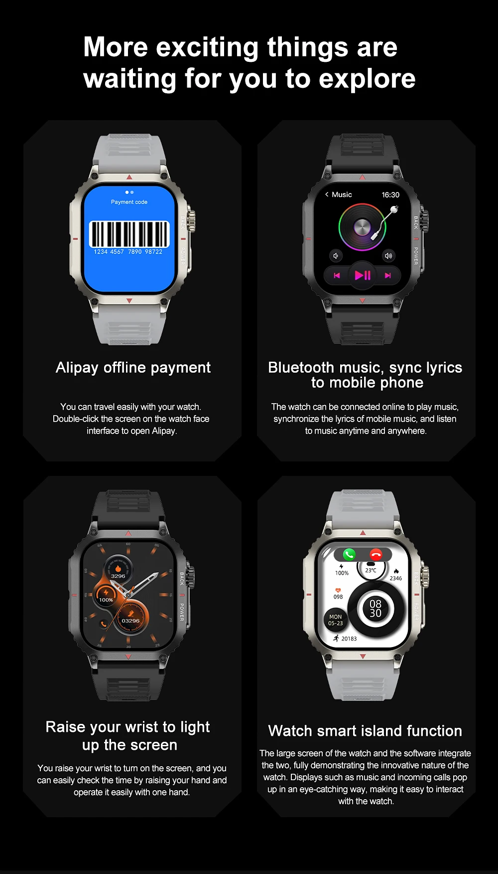 Смарт-часы для Xiaomi Huawei, 1,95 дюйма, водостойкие IP68