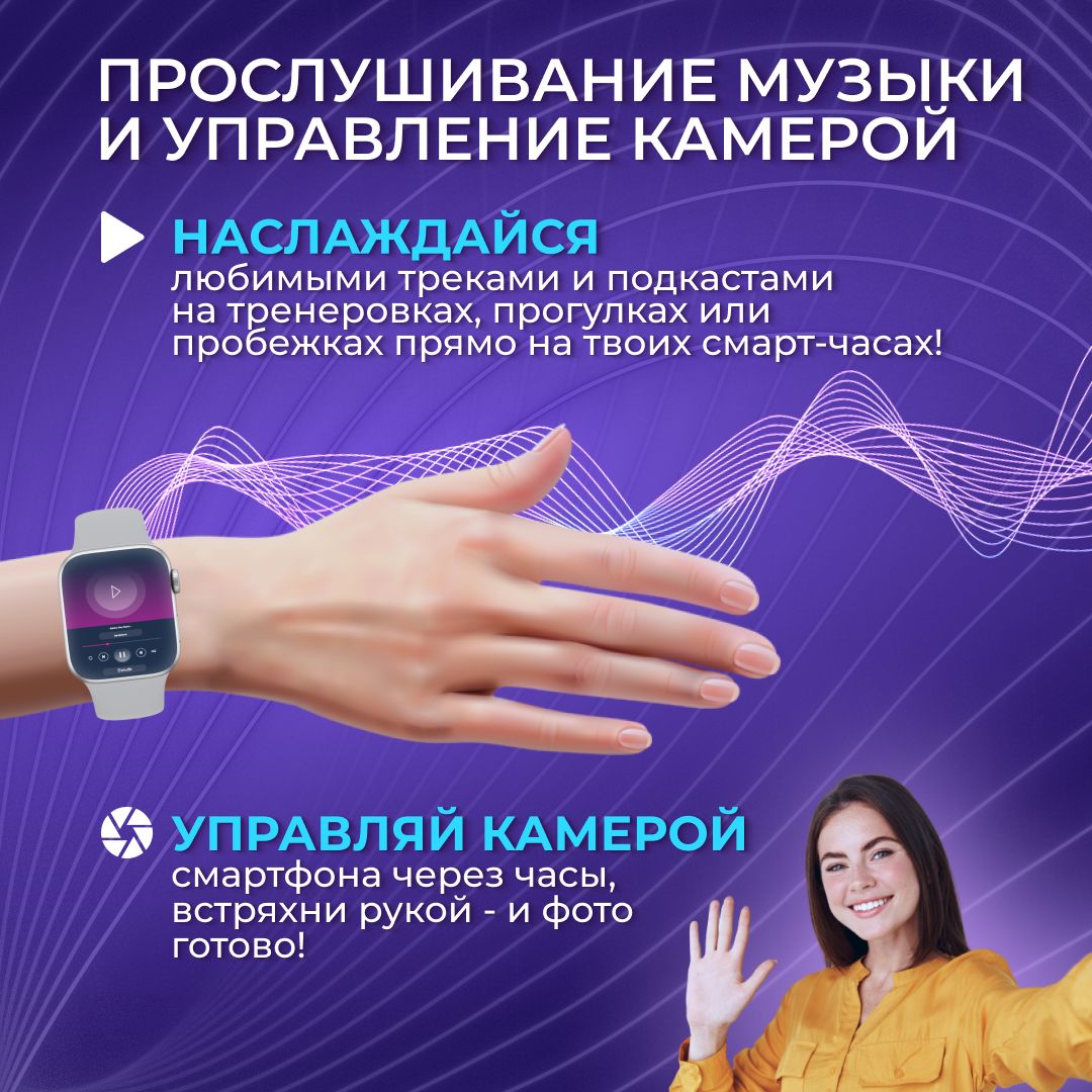 Управление музыкой, камерой и голосовым помощникомС помощью X8 Max можно управлять плейлистом на телефоне и прослушивать свою любимую музыку прямо через сами часы благодаря встроенному динамику.