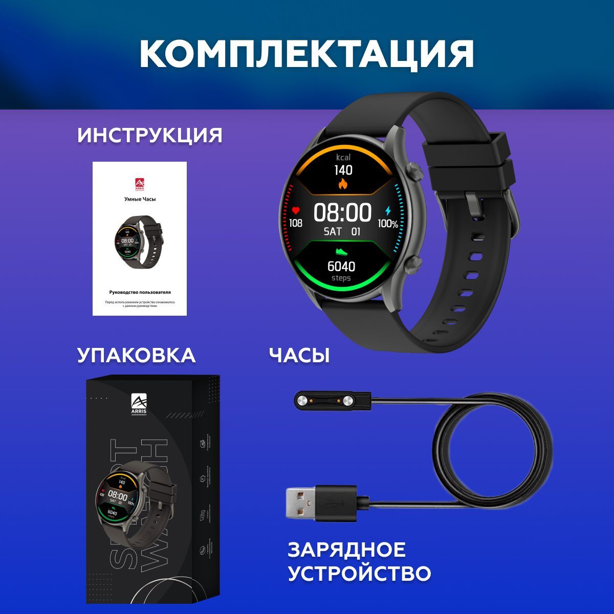 коробка, инструкция , зарядное устройство , часы