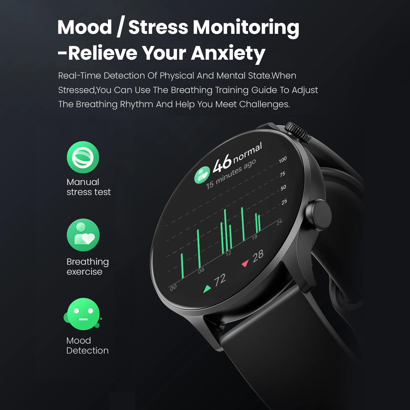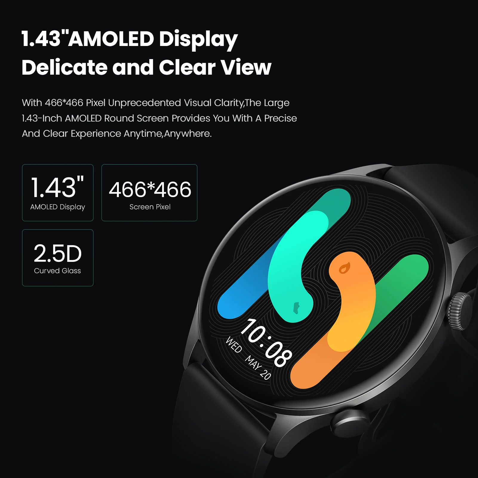 Тонкая работа: оснащен экраном 1,43 icnhes AMOLED, hd-дисплеем с функцией сенсорного управления, 466 * 466px беспрецедентной визуальной четкостью, обеспечивая вам точный и четкий опыт в любое время и в любом месте. Вы можете выбрать 100 различных тем циферблатов часов из приложения.