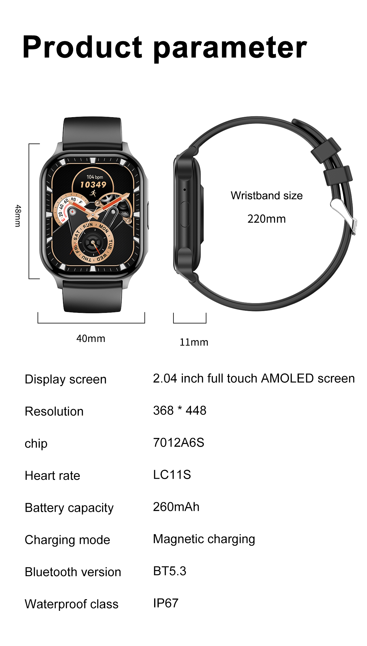 Смарт-часы HK26 для мужчин и женщин, экран 2,04 дюйма AMOLED, Bluetooth, звонки, музыка, строгий голос, пользовательский циферблат, спортивный фитнес-трекер, Смарт-часы