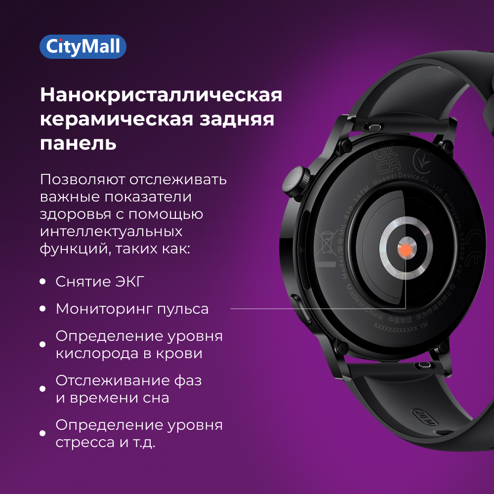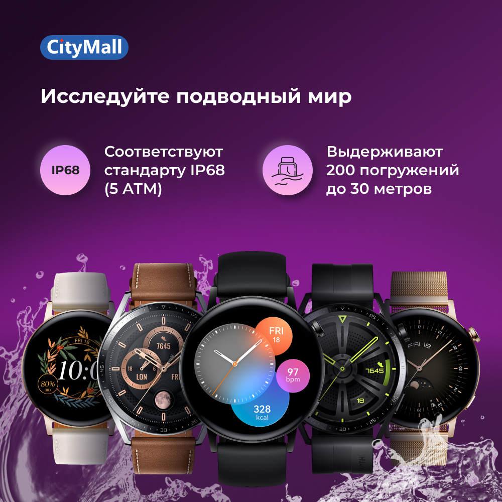 HUAWEI WATCH GT 3Причины влюбиться: Длительное время работы батареи, беспроводная зарядка14 дней работы батареи при обычном использовании;8 дней работы батареи при активном использовании7 дней работа батареи при обычном использовании;4 дня работы батареи при активном использованииBluetooth-вызовыУмный тренер по бегуТретье поколение устройств с премиальным дизайномМониторинг состояния здоровьяТочное измерение пульсаЭлегантный дизайнГладкая поверхность 42-миллиметрового циферблата из изогнутого 3D-стекла красиво отражает свет. Дизайн часов минималистичный и современный. Глянцевое покрытие корпуса и изысканный ремешок придают часам элегантность.Циферблаты на любой вкусВыберите оформление, подходящее вам по стилю. Доступны тысячи циферблатов с разными темами: спорт, минимализм, космос и т.д. Включите функцию постоянного отображения и получите удовольствие от использования часов. С легкостью меняйте ремешки. Приятный на ощупь ремешок из каучука, классический ремешок из телячьей кожи или золотистый ремешок с миланским плетением — вы всегда найдете тот, что подходит вам по стилю и настроению.Удобство и комфортИспользуйте поворотную кнопку, чтобы менять масштаб экрана приложений и быстро находить нужные функции. Высокая частота обновления экрана позволяет настраивать громкость и устанавливать время срабатывания сигнала будильника, даже когда у вас влажные руки.Высокая точность измеренийИзмерение пульсаОбновленный модуль датчика для измерения пульса оснащен восемью расположенными по кругу светодиодами, двумя источниками света и стеклянной панелью, что обеспечивает комфорт при использовании часов и защищает от попадания внешнего света. А усовершенствованный алгоритм на базе искусственного интеллекта эффективно защищает от внешних помех, обеспечивает высокую точность измерения даже при выполнении интенсивных упражнений и позволяет отслеживать такие показатели здоровья, как уровень кислорода в крови.Стабильный сигналЧасы поддерживают определение местоположения с помощью GPS, Beidou, ГЛОНАСС, Galileo и QZSS. Благодаря инновационным технологиям защиты от помех сигнал всегда стабилен. Каждый сделанный шаг во время тренировки будет зафиксирован. HUAWEI WATCH GT 3 принимают сигналы спутников в диапазонах L1 и L5, что также позволяет точно определять ваше местоположение.7днейДлительное время работы батареи, беспроводная зарядкаHUAWEI WATCH GT 3 поддерживают функцию беспроводной зарядки. Вам больше не нужно беспокоиться о времени работы батареи, используйте смартфон для обратной зарядки, если вы забыли дома зарядное устройство5. HUAWEI WATCH GT 3 (46 мм) могут работать в автономном режиме до 14 дней, а HUAWEI WATCH GT 3 (42 мм) — до 7 дней. Фиксируйте данные ваших тренировок и следите за состоянием здоровья.Полезная информация в режиме реального времениКаждый день на часах в режиме реального времени отображается время восхода и заката солнца, фазы луны и информация о приливах и отливах. Встроенный барометр высоты в режиме реального времени отслеживает изменения давления и заранее информируя вас о резких перепадах. Теперь вы надежно защищены во время путешествий и походов.Ваш персональный умный тренер по бегуНезависимо от того, давно ли вы занимаетесь бегом, HUAWEI WATCH GT 3 предоставляют индивидуальные инструкции для тренировок по бегу. Часы отслеживают данные пред