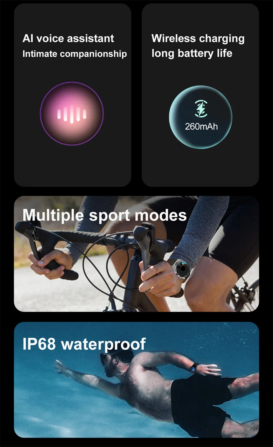Дорогой друг, большое спасибо за вашу поддержку, это многофункциональные спортивные умные часы! У продукта много очень полезных функций! Например, функция вызова Bluetooth, после подключения Bluetooth мобильного телефона вы можете совершать звонки напрямую! Функция голосового помощника AI, Откройте функцию часов через голос! Есть также некоторые медицинские функции, чтобы контролировать частоту сердечных сокращений, артериальное давление и следить за своим здоровьем! Все это очень полезные функции!