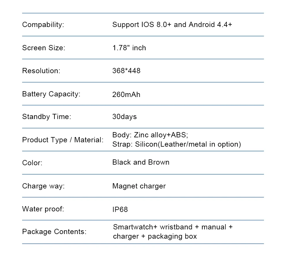 Совместимость: Поддержка IOS 8,0 + и Android 4,4 +