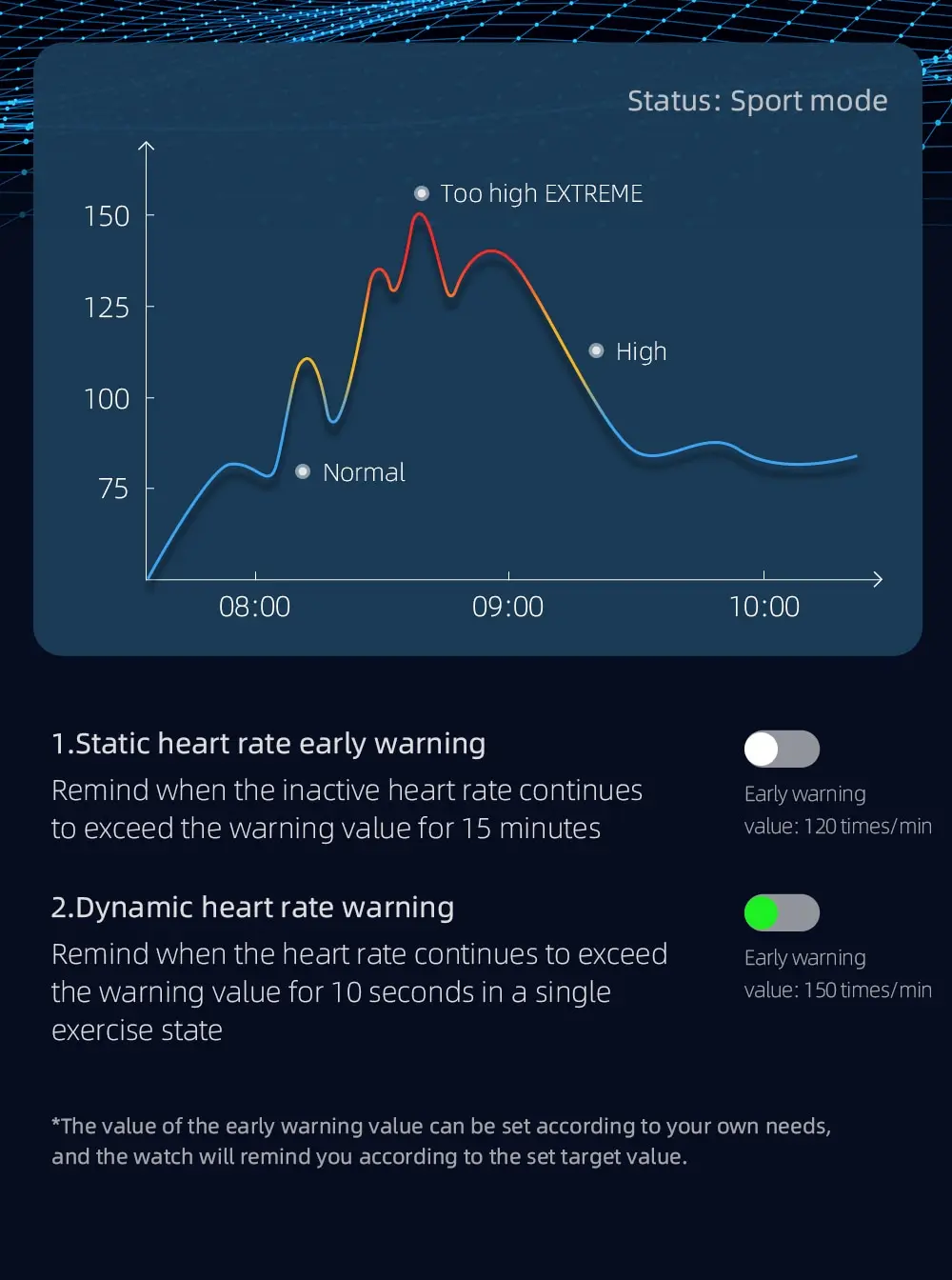 Подключение в один клик удобнееВысокое напоминание сердечного ритмаЗдоровье БатлерМониторинг снаПользовательская кнопка100 + спортивных режимовКонтроль доступа NFCГолосовой помощник AlIP68 Водонепроницаемый