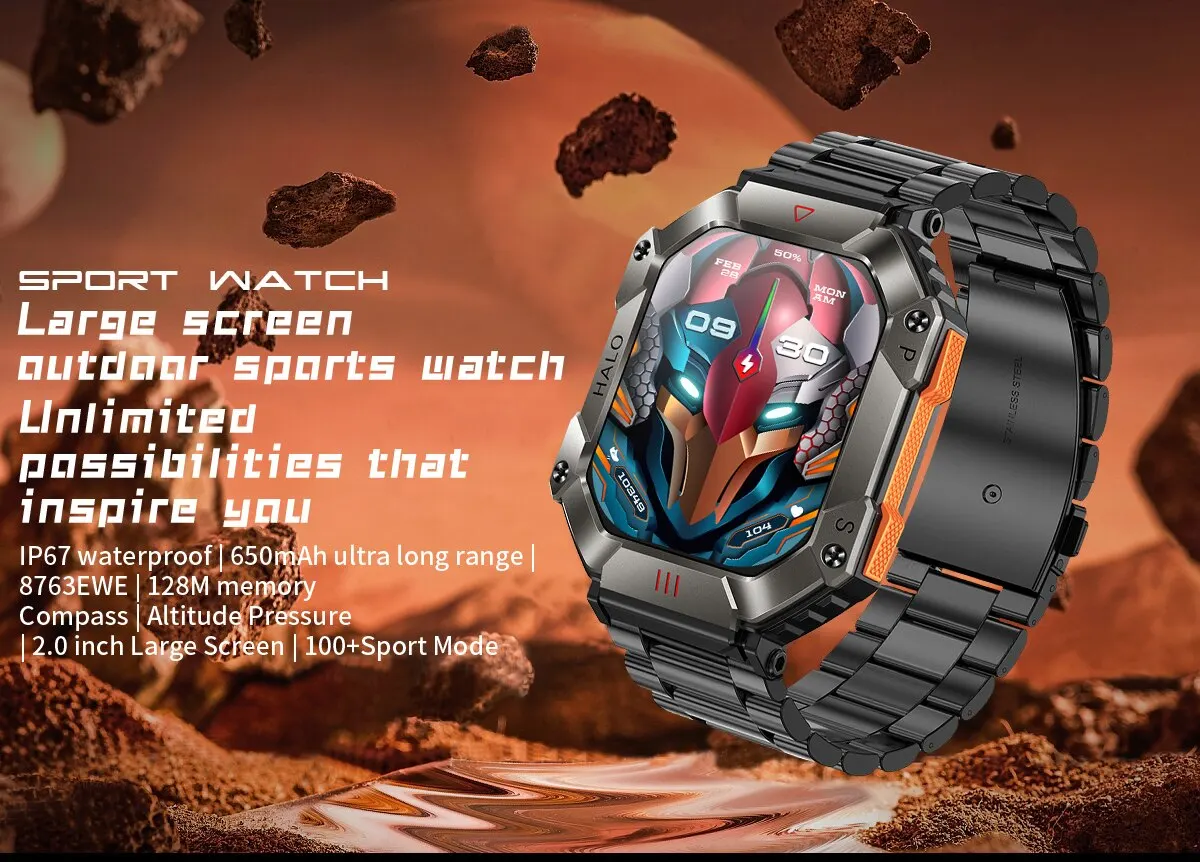 Смарт-часы MELANDA KR80 мужские с поддержкой Bluetooth, 2,0 дюйма, 650 мАч