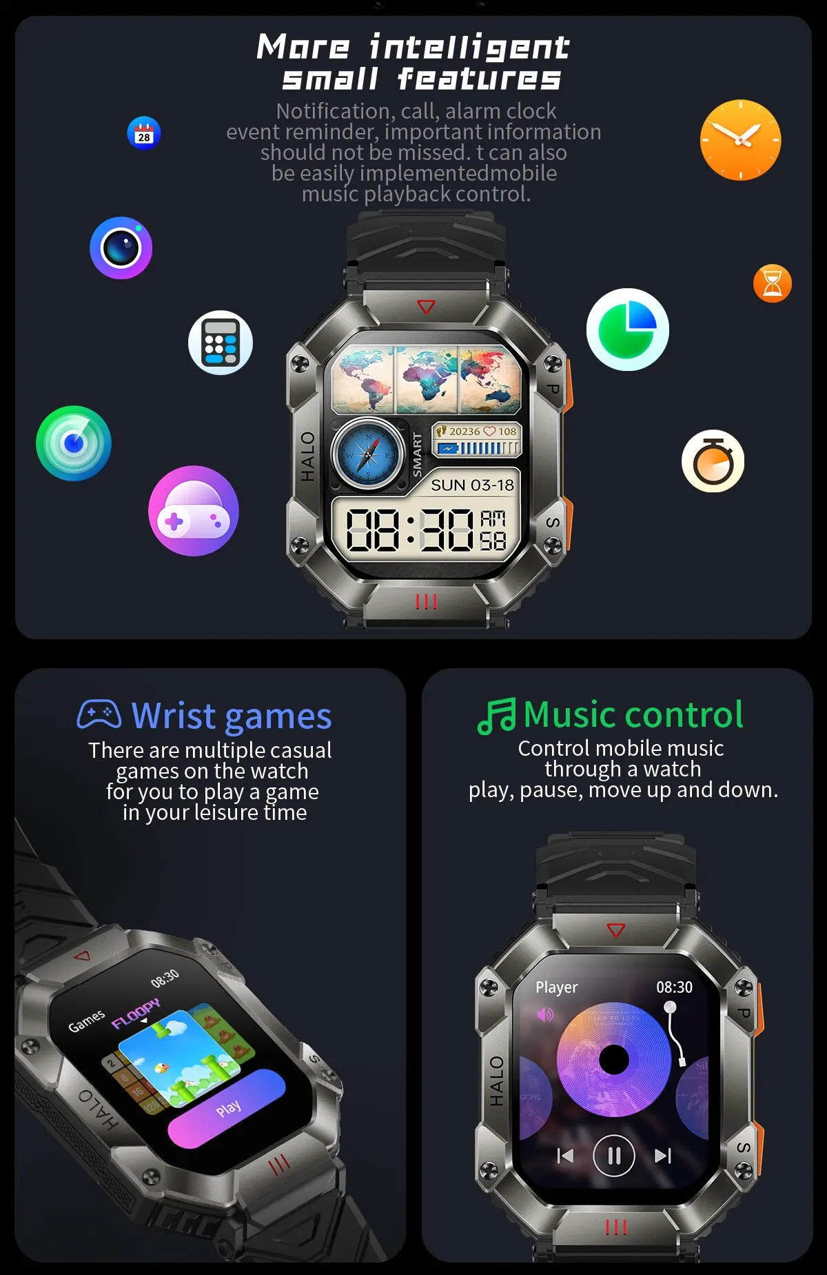 Хит 2,0 "Bluetooth вызов умные часы Мужчины компас высоты барометрические умные часы для Android iOS