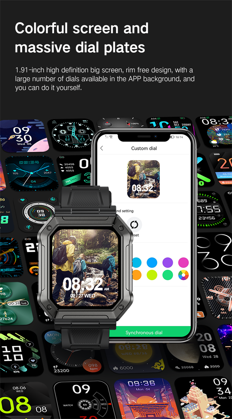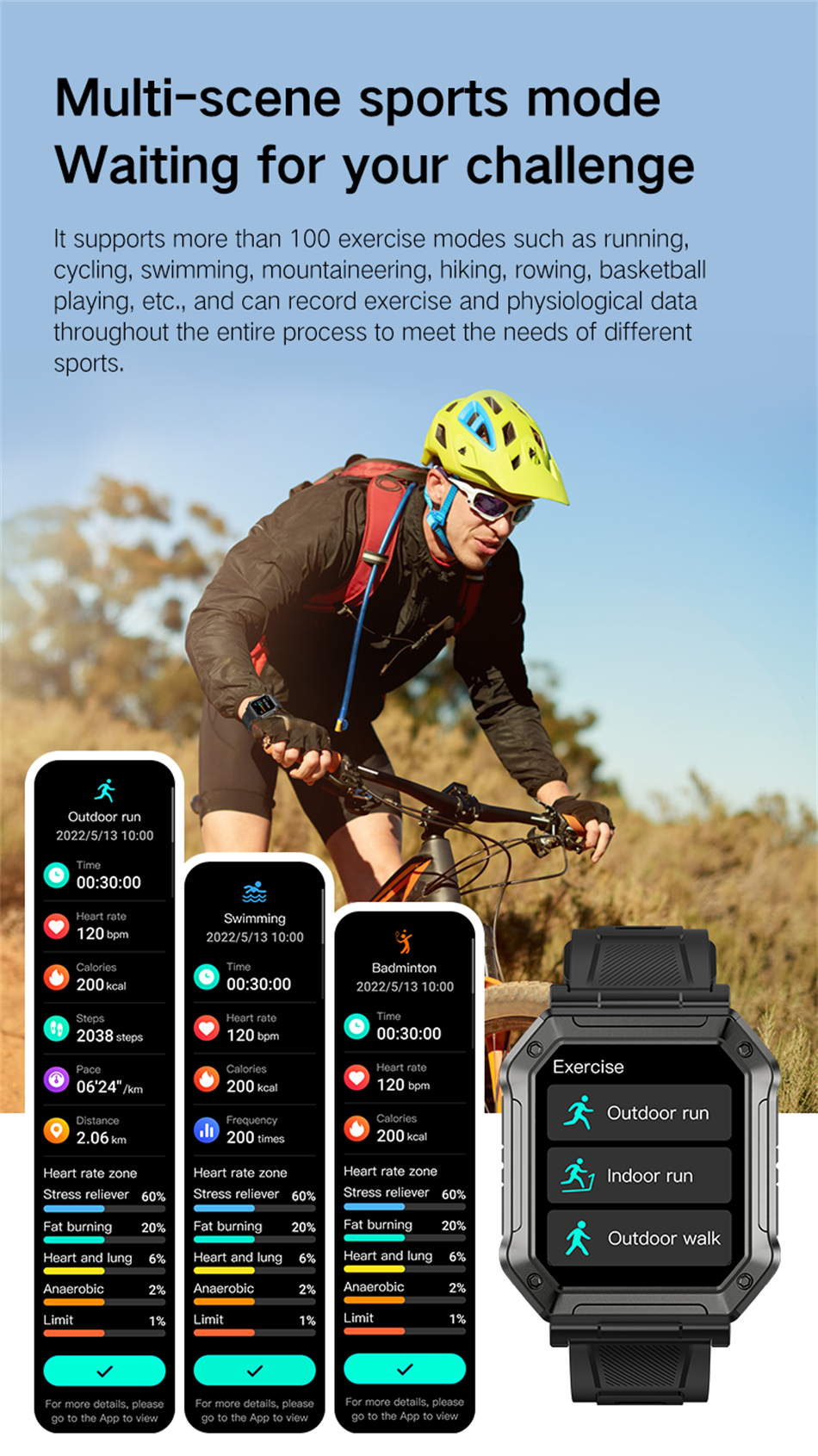 Основные характеристики: Спортивная трасса приложения, определение артериального давления, 24-часовое непрерывное определение частоты сердечных сокращений, шагомер, сожженные калории, секундомер, таймер, погода, расстояние, рейтинг водонепроницаемости IP68 (с возможностью поворота), 100 + спортивных режимов. Звонок по Bluetooth, управление музыкой, оповещение о вызове, уведомление о синхронизации, многозвон, будильник, браслет для пробуждения, пульт дистанционного управления камерой, музыка по Bluetooth, режим «Не беспокоить», индивидуальное лицо