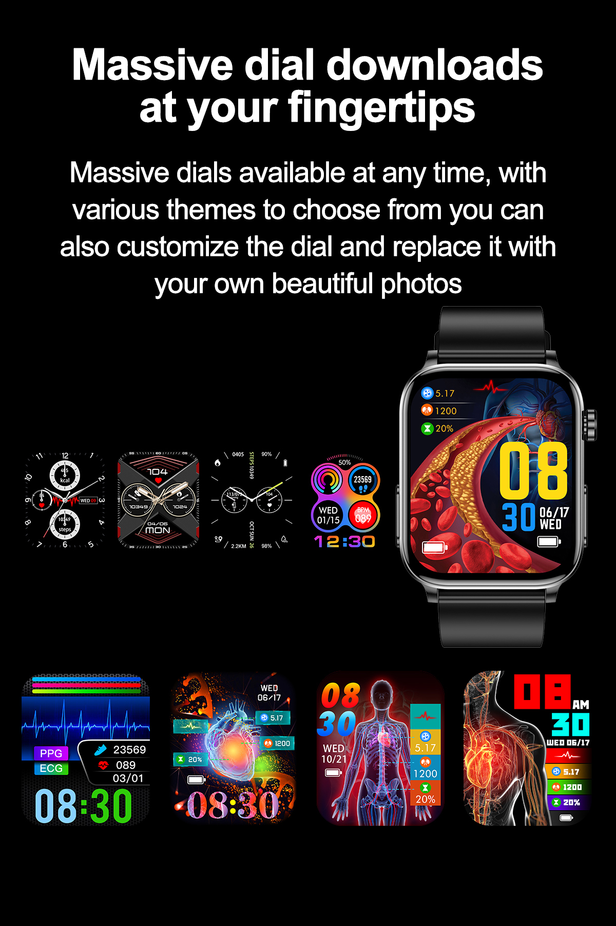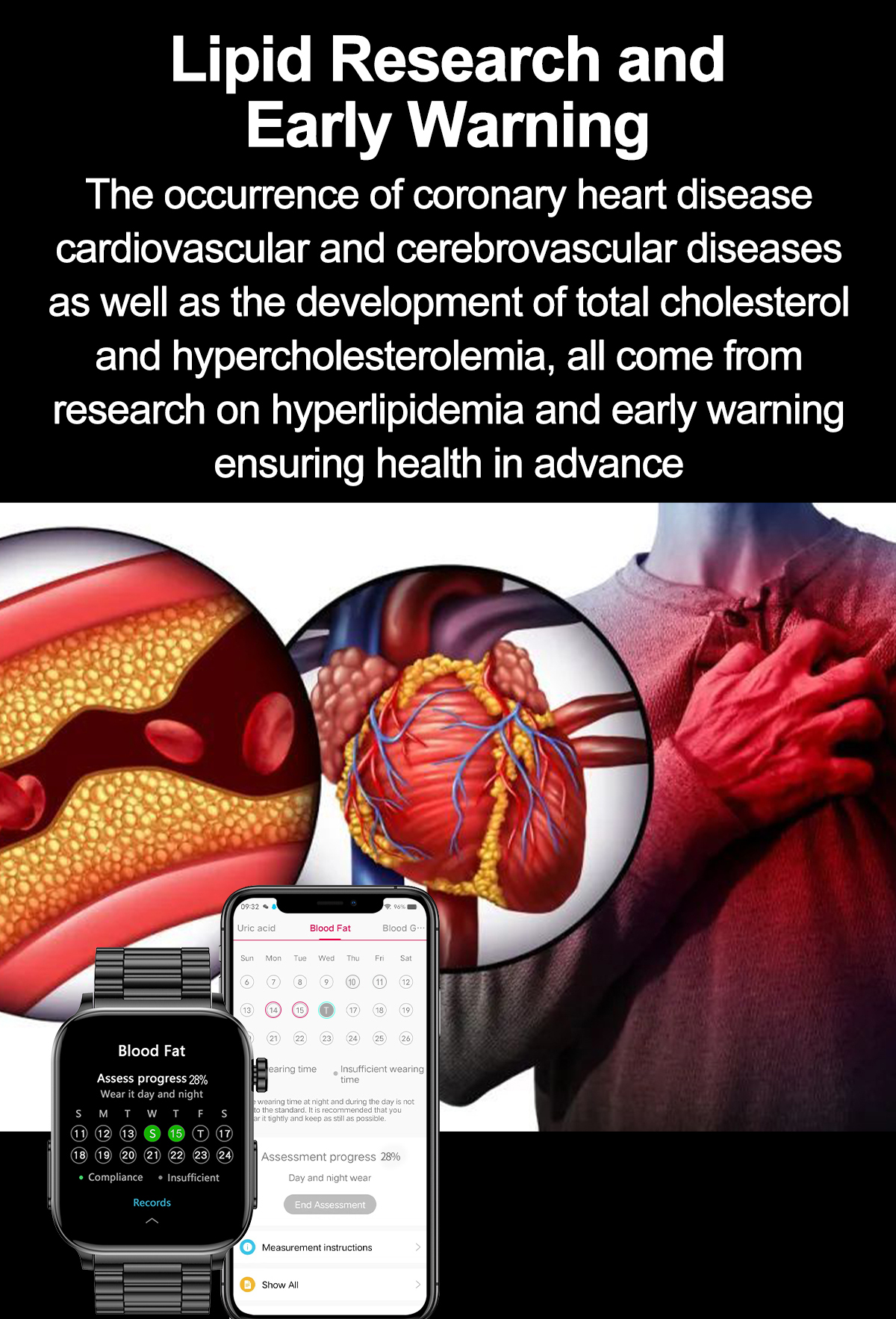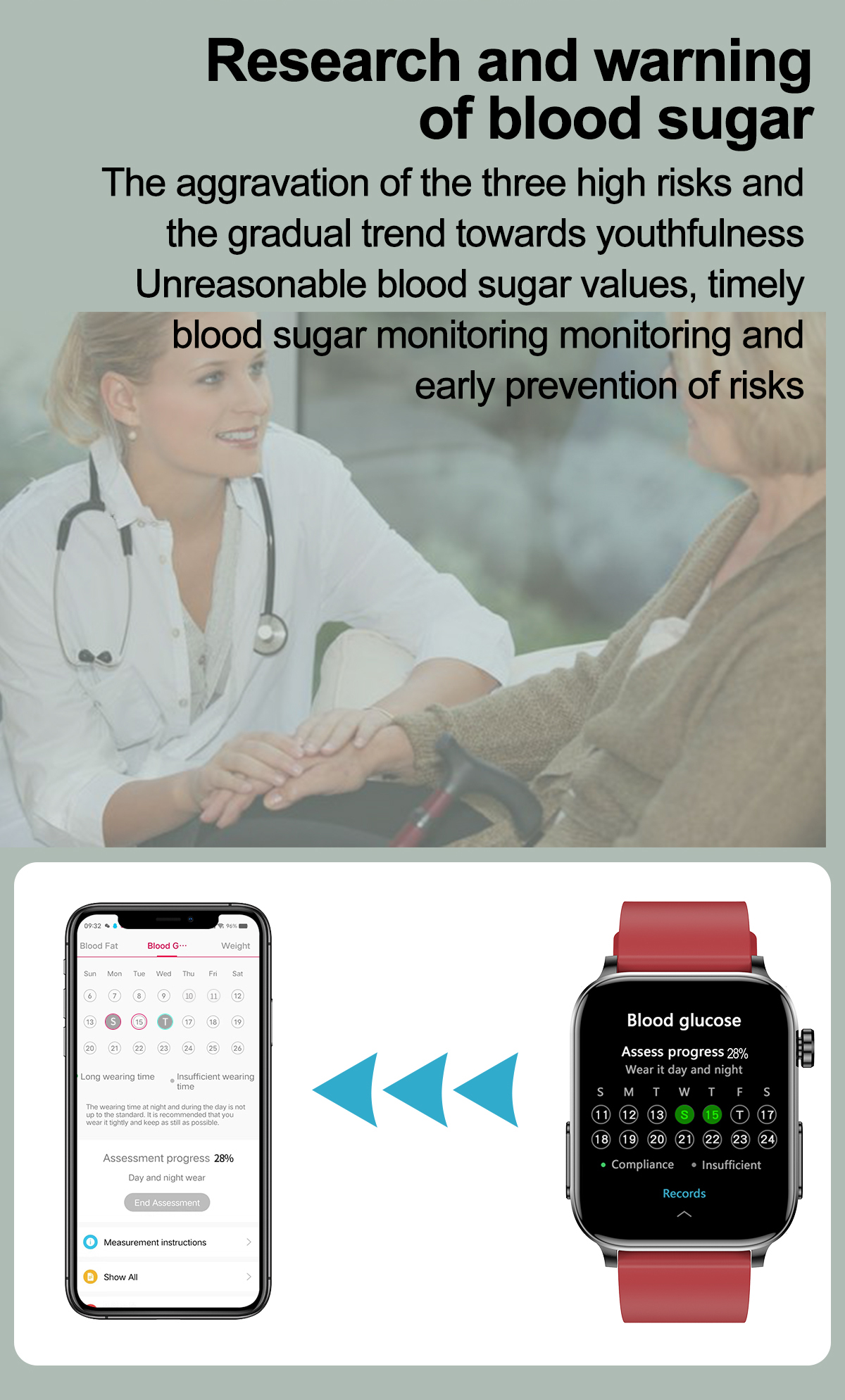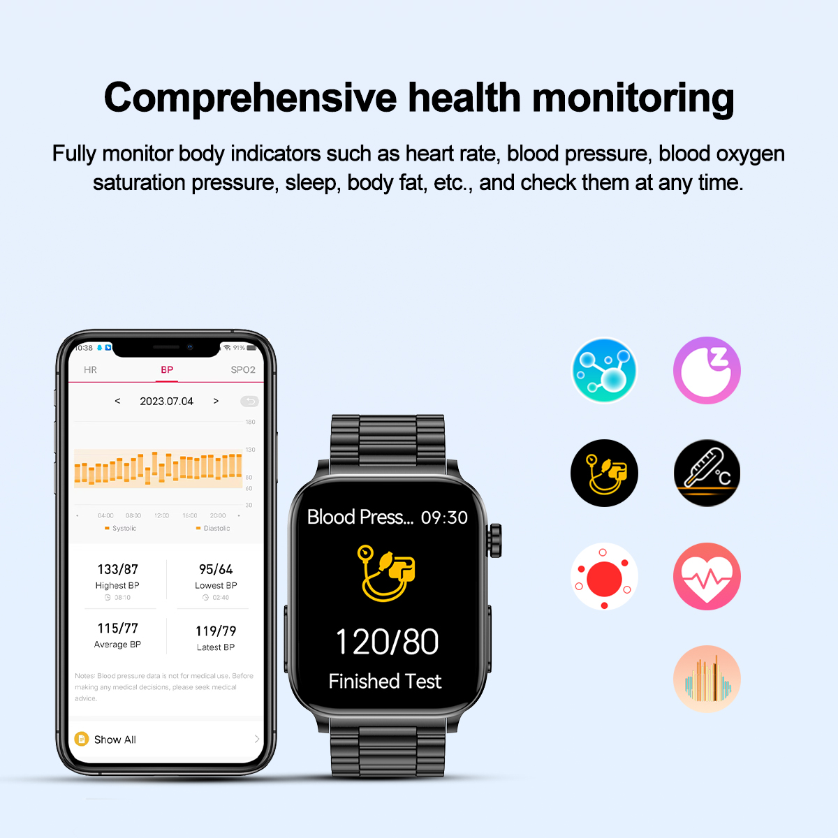Смарт-часы мужские с функцией измерения сахара в крови и мочевой кислоты