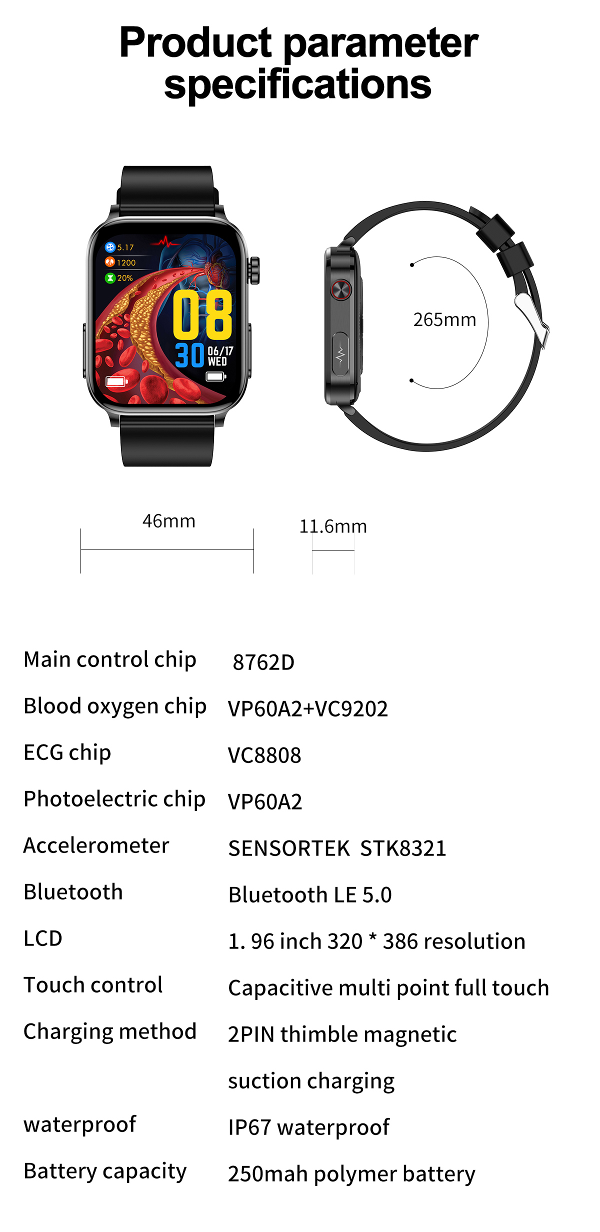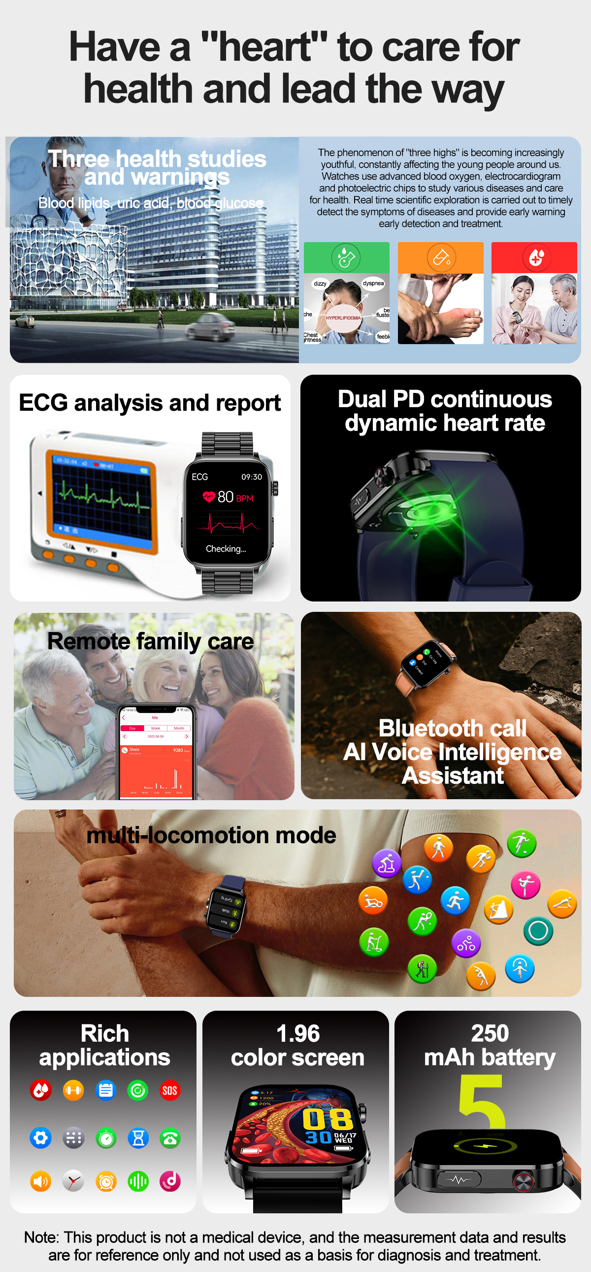 6. 24-часовой непрерывный Амбулаторный Мониторинг сердечного ритма (с мониторингом в реальном времени), мониторинг температуры тела, стресс-тестирование, независимый точный кислород крови, Мониторинг Артериального давления и другие функции мониторинга здоровья.