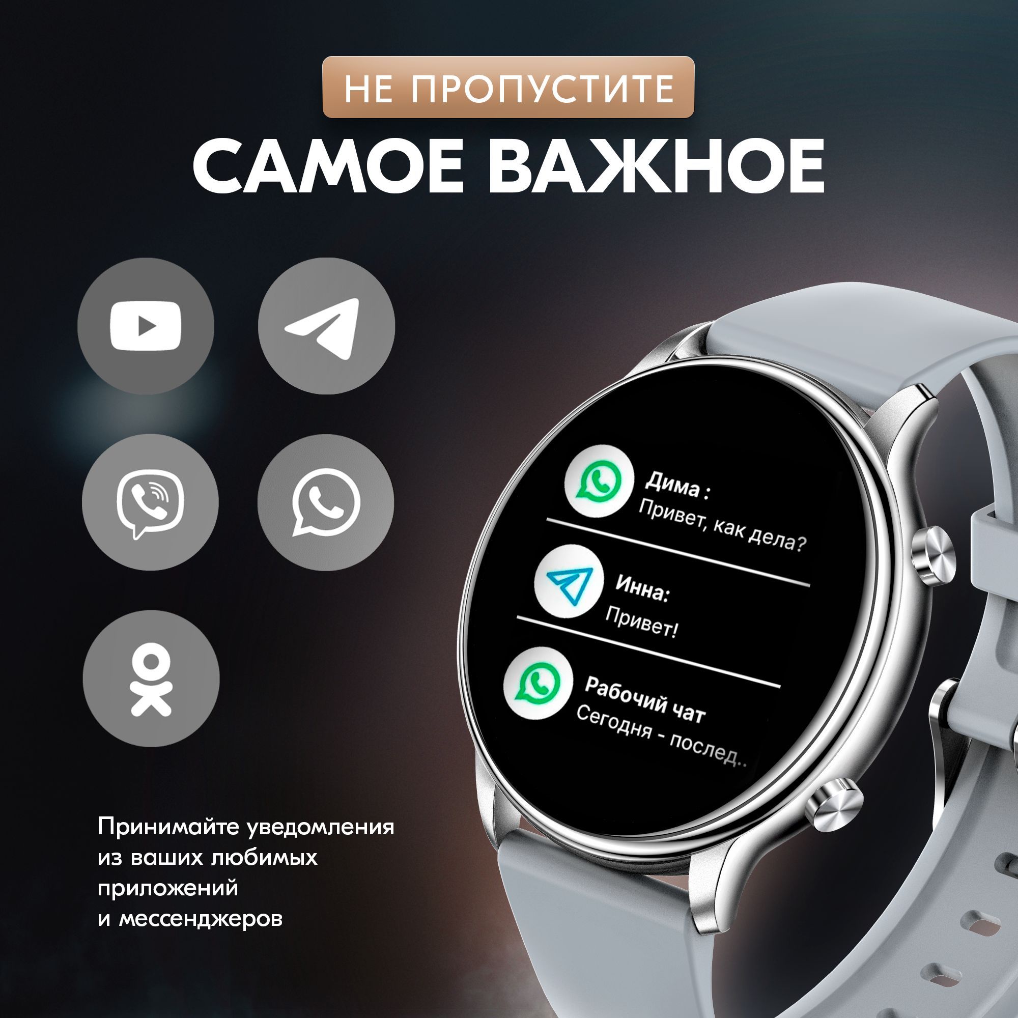 УведомленияС помощью смарт-часов Вы можете получать уведомления о звонках, сообщениях, электронных письмах и уведомлениях от приложений прямо на вашем запястье. Это удобно, когда ваш смартфон находится в сумке или кармане.