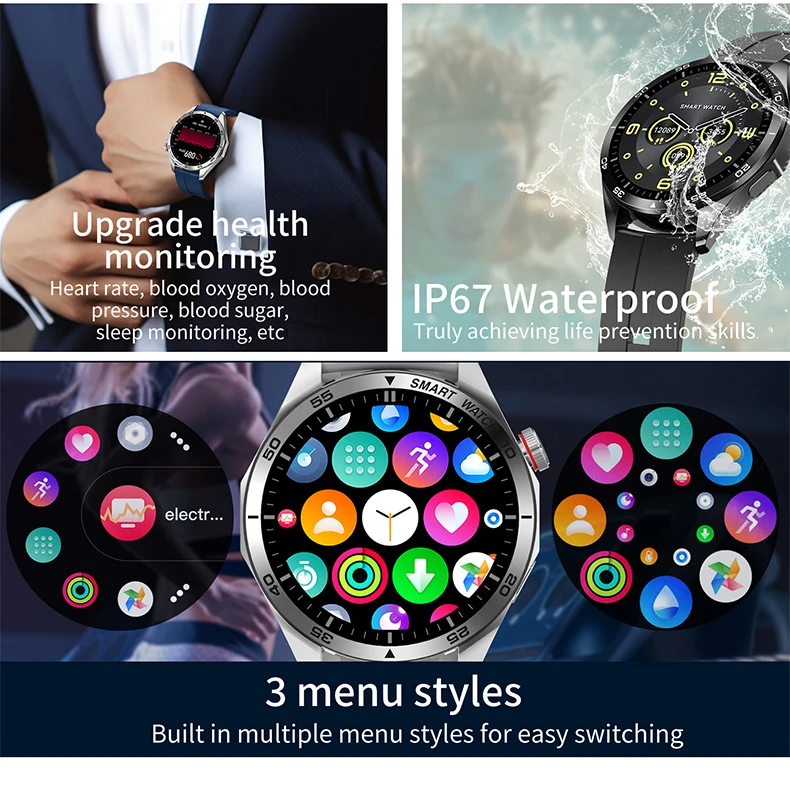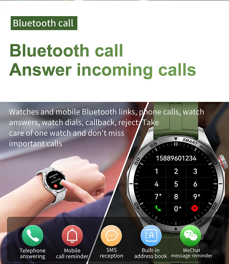 Смарт-часы мужские водонепроницаемые с поддержкой Bluetooth и пульсометром