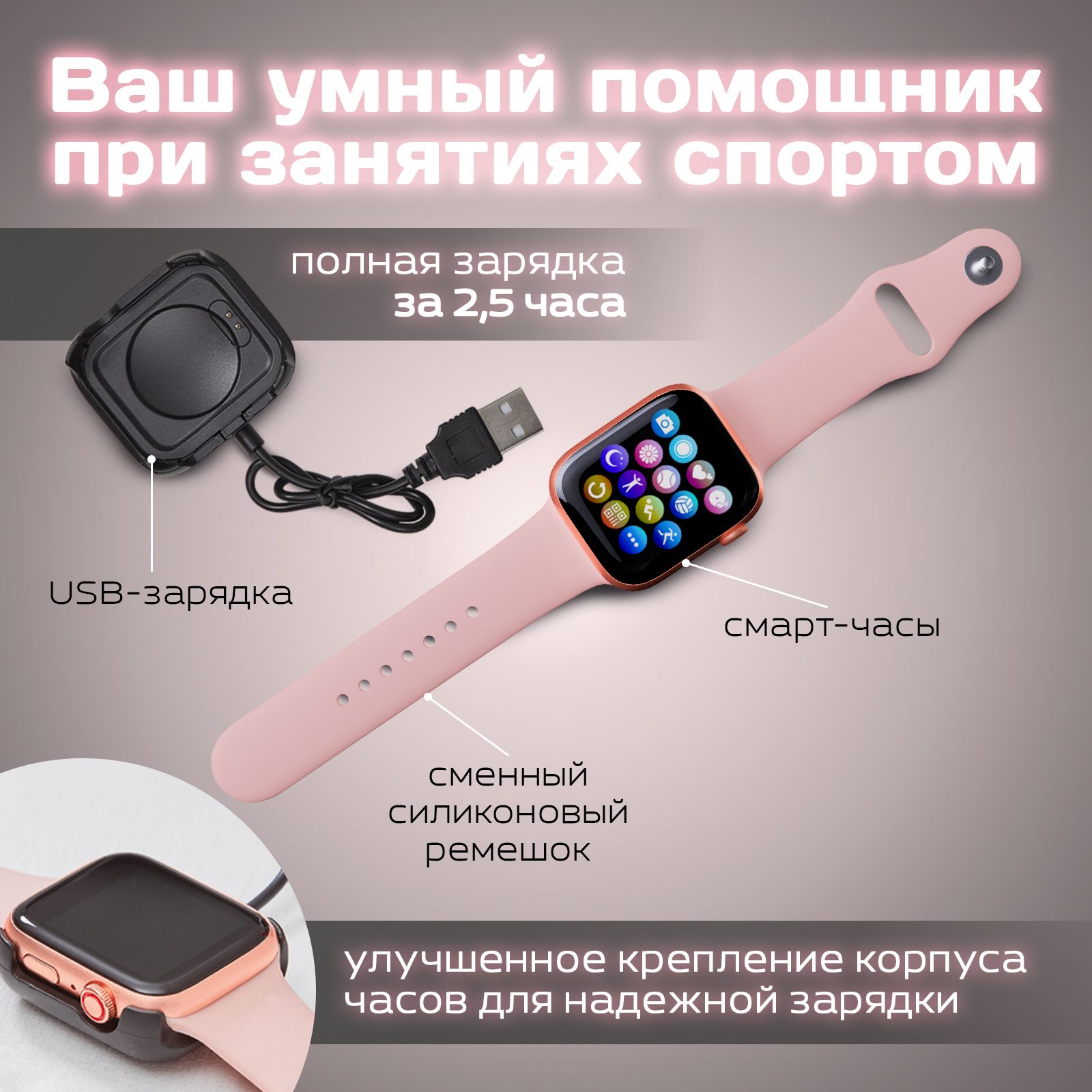 Описание: Смарт часы - незаменимый помощник в повседневной жизни! Высококачественный сенсорный экран 1,4 дюйма, Поддержка всех языков, в т.ч. и русского. Мягкий силиконовый ремешок. Умные часы являются отличным подарком на любой праздник!