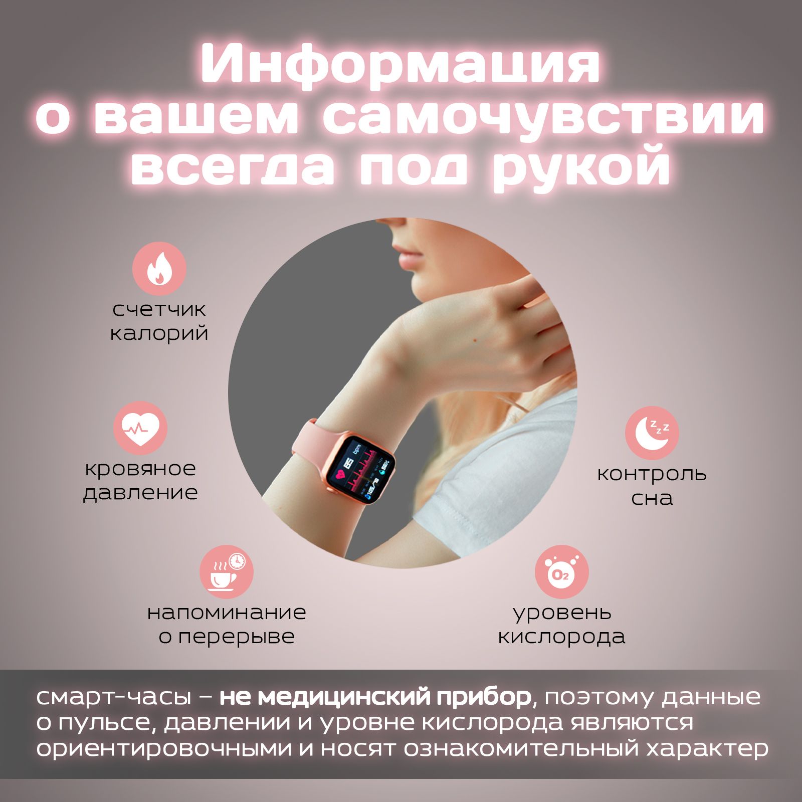 Смарт-часы - не медицинский прибор, поэтому данные о пульсе, давлении и уровне кислорода являются ориентировочными и носят ознакомительный характер!