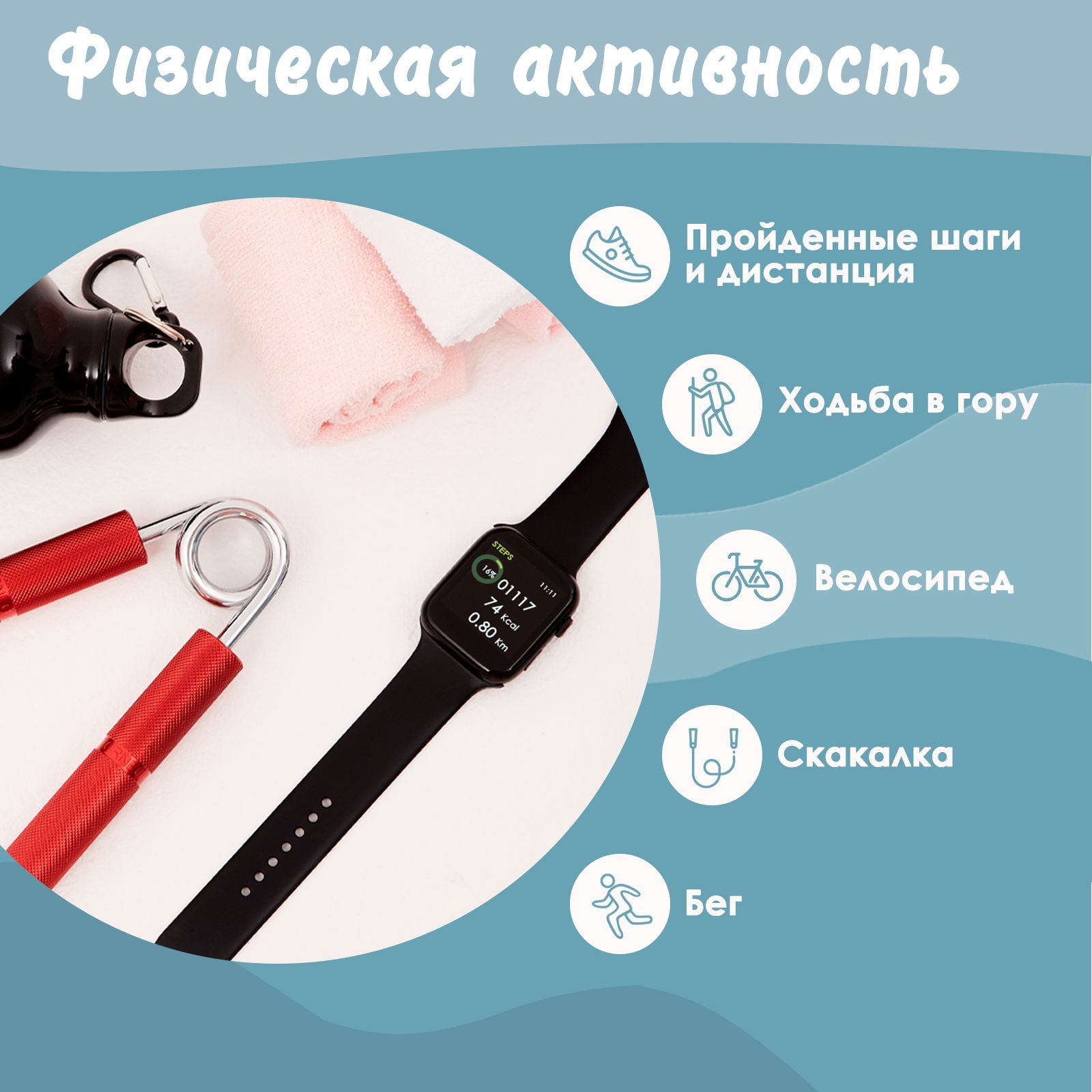 Описание: Фитнес-часы сочетают в себе функции классических наручных часов и передовые возможности смарт-часов. Эти электронные часы на руку обладают широким спектром функций и предназначены для активных мужчин и женщин, которые следят за своим здоровьем и физической активностью. Дизайн этих часов современный и стильный, подходящий как для повседневного использования, так и для спортивных тренировок. Они выполнены в черном металлическом корпусе, что придает им элегантность и прочность. Универсальный размер и комфортный силиконовый ремешок soft touch (резиновым браслетом) обеспечивают удобную посадку на запястье. Экран часов изготовлен из закаленного стекла, что делает его прочным и устойчивым к повреждениям. Благодаря сенсорному управлению, вы можете легко взаимодействовать с функциями часов, прокручивая экран и выбирая необходимые опции. Фитнес-браслеты предлагают множество функций, чтобы помочь вам контролировать свое физическое состояние. Они оснащены встроенным шагомером, который отслеживает количество пройденных шагов, а измерение расстояния позволяет оценить пройденное расстояние за день. Счетчик калорий отслеживает количество калорий, которые вы сожгли во время тренировок и повседневных активностей. Мониторинг сердечной активности и пульсометр помогают следить за пульсом и контролировать интенсивность тренировок. Вы также можете отслеживать кровяное давление и уровень кислорода в крови, чтобы получить более полную картину своего здоровья. Фитнес браслет также предлагает удобные функции, такие как секундомер, мониторинг сна и будильник, чтобы помочь вам организовать свое время и обеспечить здоровый режим сна. Они могут принимать входящие звонки и уведомления, что позволяет оставаться на связи, даже когда телефон находится в кармане. Часы наручные мужские, женские идеально подходят для спорта, активного образа жизни и повседневного использования. Эти электронные часы являются надежным спутником для тех, кто стремится к здоровому образу жизни и модным аксессуаром для завершения стильного образа.
