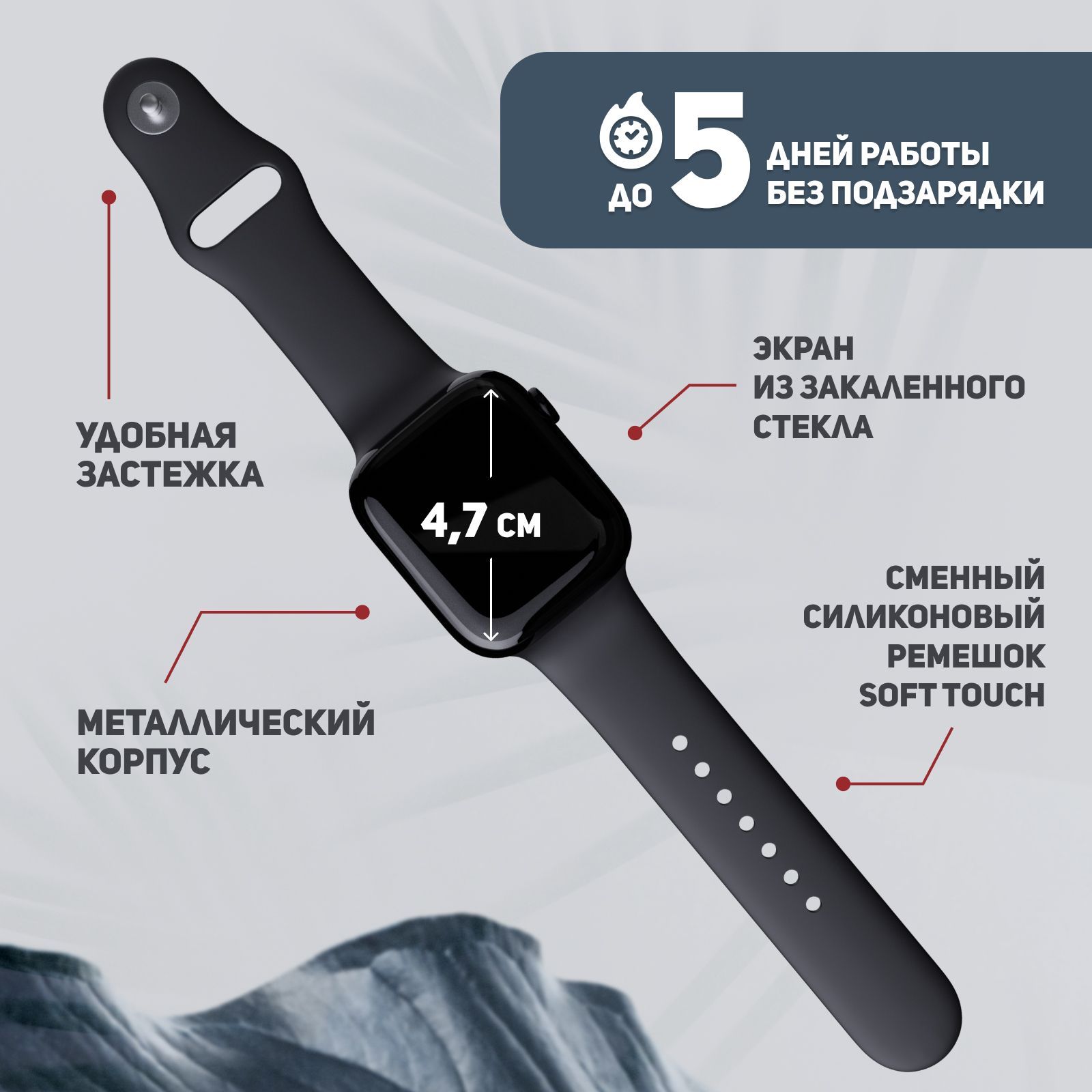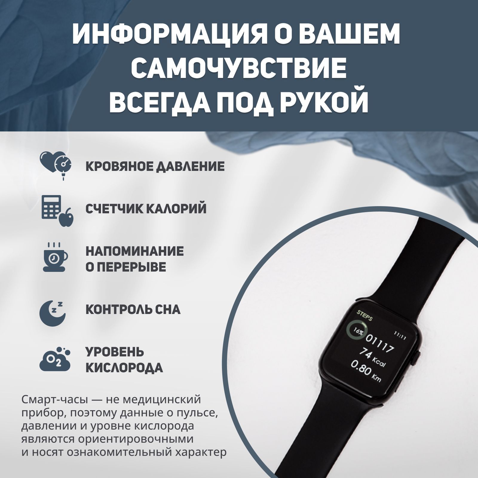 Описание: Фитнес-часы сочетают в себе функции классических наручных часов и передовые возможности смарт-часов. Эти электронные часы на руку обладают широким спектром функций и предназначены для активных мужчин и женщин, которые следят за своим здоровьем и физической активностью. Дизайн этих часов современный и стильный, подходящий как для повседневного использования, так и для спортивных тренировок. Они выполнены в черном металлическом корпусе, что придает им элегантность и прочность. Универсальный размер и комфортный силиконовый ремешок soft touch (резиновым браслетом) обеспечивают удобную посадку на запястье. Экран часов изготовлен из закаленного стекла, что делает его прочным и устойчивым к повреждениям. Благодаря сенсорному управлению, вы можете легко взаимодействовать с функциями часов, прокручивая экран и выбирая необходимые опции. Фитнес-браслеты предлагают множество функций, чтобы помочь вам контролировать свое физическое состояние. Они оснащены встроенным шагомером, который отслеживает количество пройденных шагов, а измерение расстояния позволяет оценить пройденное расстояние за день. Счетчик калорий отслеживает количество калорий, которые вы сожгли во время тренировок и повседневных активностей. Мониторинг сердечной активности и пульсометр помогают следить за пульсом и контролировать интенсивность тренировок. Вы также можете отслеживать кровяное давление и уровень кислорода в крови, чтобы получить более полную картину своего здоровья. Фитнес браслет также предлагает удобные функции, такие как секундомер, мониторинг сна и будильник, чтобы помочь вам организовать свое время и обеспечить здоровый режим сна. Они могут принимать входящие звонки и уведомления, что позволяет оставаться на связи, даже когда телефон находится в кармане. Часы наручные мужские, женские идеально подходят для спорта, активного образа жизни и повседневного использования. Эти электронные часы являются надежным спутником для тех, кто стремится к здоровому образу жизни и модным аксессуаром для завершения стильного образа.