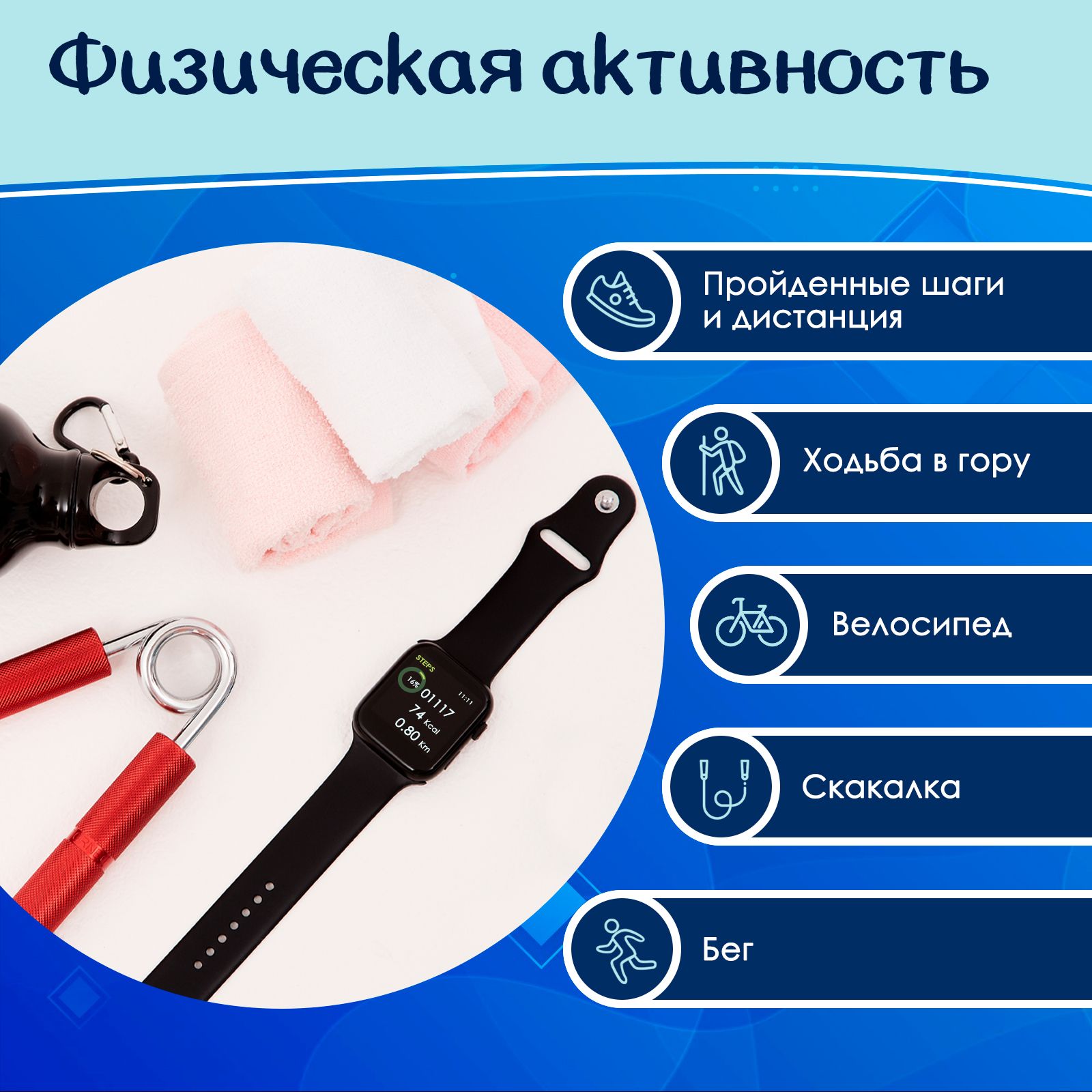 Описание: Фитнес-часы сочетают в себе функции классических наручных часов и передовые возможности смарт-часов. Эти электронные часы на руку обладают широким спектром функций и предназначены для активных мужчин и женщин, которые следят за своим здоровьем и физической активностью. Дизайн этих часов современный и стильный, подходящий как для повседневного использования, так и для спортивных тренировок. Они выполнены в черном металлическом корпусе, что придает им элегантность и прочность. Универсальный размер и комфортный силиконовый ремешок soft touch (резиновым браслетом) обеспечивают удобную посадку на запястье. Экран часов туристических изготовлен из закаленного стекла, что делает его прочным и устойчивым к повреждениям. Благодаря сенсорному управлению, вы можете легко взаимодействовать с функциями часов, прокручивая экран и выбирая необходимые опции. Часы квадратные женские мужские предлагают множество функций, чтобы помочь вам контролировать свое физическое состояние. Часы электрические водонепроницаемые оснащены встроенным шагомером, который отслеживает количество пройденных шагов, а измерение расстояния позволяет оценить пройденное расстояние за день. Счетчик калорий отслеживает количество калорий, которые вы сожгли во время тренировок и повседневных активностей. Мониторинг сердечной активности и пульсометр помогают следить за пульсом и контролировать интенсивность тренировок. Вы также можете отслеживать кровяное давление и уровень кислорода в крови, чтобы получить более полную картину своего здоровья. Фитнес браслет также предлагает удобные функции, такие как секундомер, мониторинг сна и будильник, чтобы помочь вам организовать свое время и обеспечить здоровый режим сна. Они могут принимать входящие звонки и уведомления, что позволяет оставаться на связи, даже когда телефон находится в кармане. Часы наручные мужские, женские идеально подходят для спорта, активного образа жизни и повседневного использования. Эти электронные часы шагомер являются надежным спутником для тех, кто стремится к здоровому образу жизни и модным аксессуаром для завершения стильного образа.
