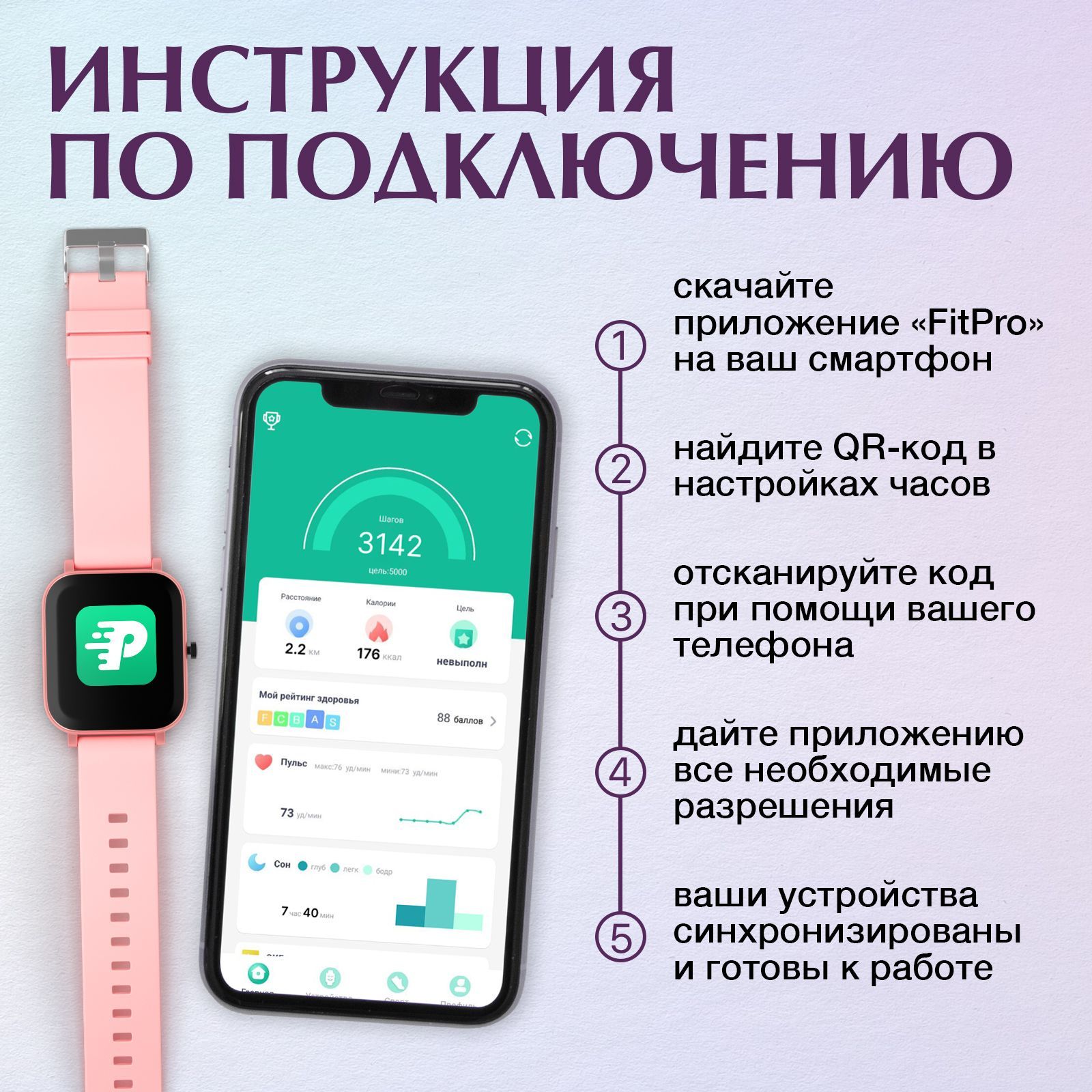 Мониторинг: Усвоения калорий, Сердечного ритма, Сна, Физической активности