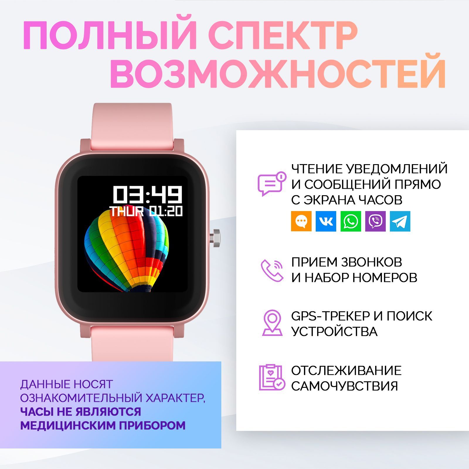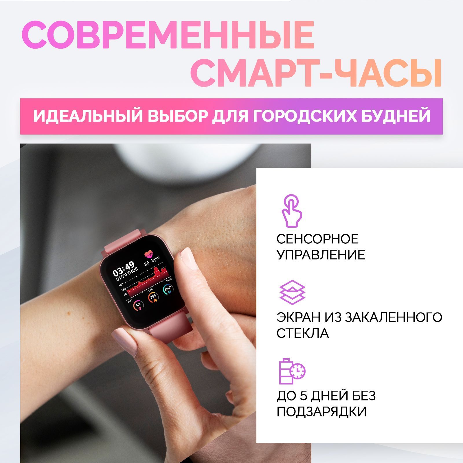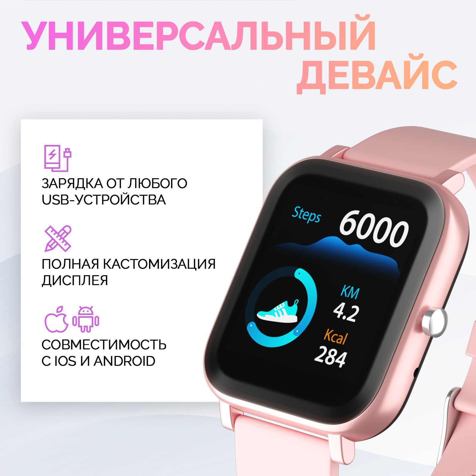 Описание: Умные часы являются незаменимым аксессуаром, который позволяет всегда оставаться на связи. Они имеют лаконичный и минималистичный дизайн, что дает возможность носить их как женщинам, так и мужчинам. Электронные часы на руку выполнены из высококачественного материала, ремешок сделан из силикона, плотно прилегающий к запястью. Этот гаджет заботится о здоровье в режиме реального времени: измеряет артериальное давление, контролирует частоту пульса, анализирует качество сна. Часы для спорта имеют удобный прямоугольный циферблат, изогнутый дисплей и способны держать заряд до 5 дней. Мужские спортивные часы будут верным помощником во время тренировок, фитнеса, бега, велоспорта, скандинавской ходьбы. Они обладают защитой от влаги и пыли, что позволяет носить их в любую погоду. Смарт часы оснащены дополнительными опциями, а именно: прием звонков и набор номеров, будильник, чтение уведомлений и сообщений прямо с сенсорного экрана. Детские часики имеют встроенный GPS-трекер, который позволяет отслеживать местоположение и прокладывать маршруты. Этот аксессуар будет элегантным дополнением как для повседневного образа, так и для праздничного мероприятия. Водонепроницаемый фитнес браслет напомнит о разминке, а шагомер и счетчик калорий будут служить мотиватором для подвижного времяпрепровождения.