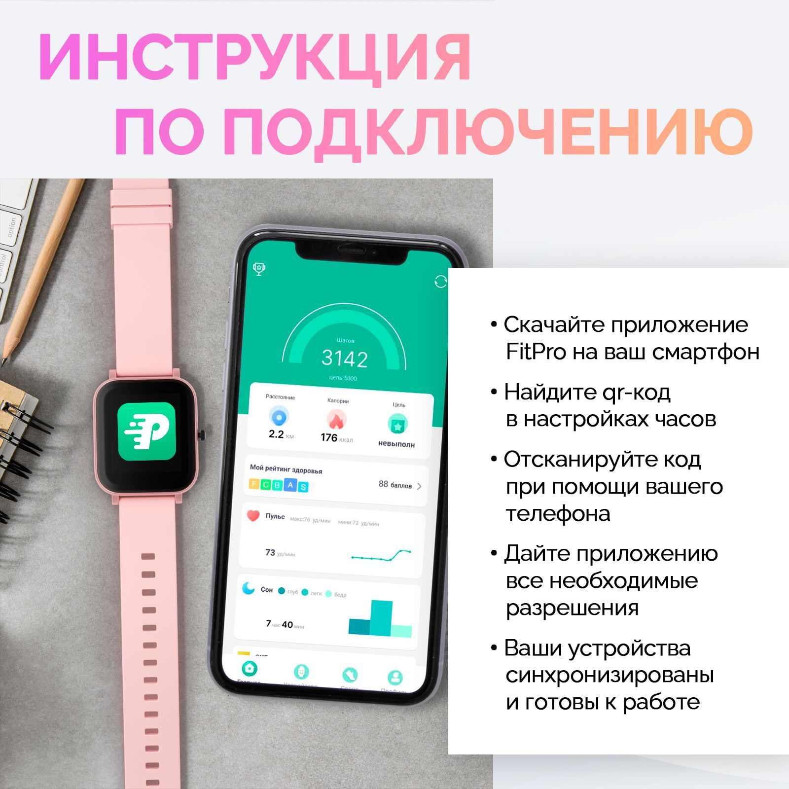 Мониторинг: Усвоения калорий, Сердечного ритма, Сна, Физической активности