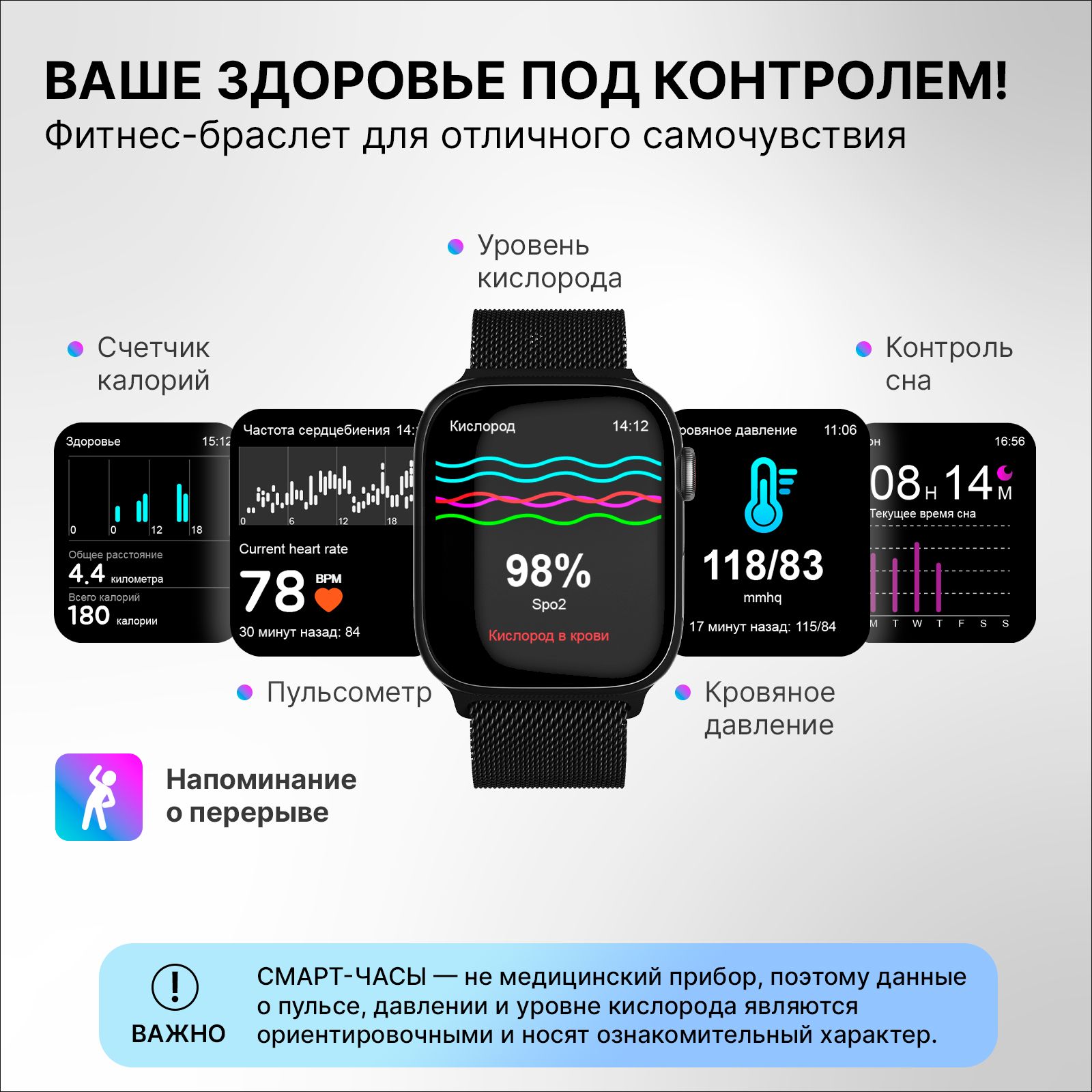 Смарт-часы - не медицинский прибор, поэтому данные о пульсе, давлении и уровне кислорода являются ориентировочными и носят ознакомительный характер!
