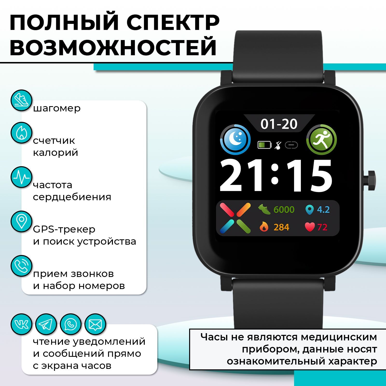 Описание: Смарт часы являются незаменимым аксессуаром, который позволяет всегда оставаться на связи. Они выполнены из высококачественного материала, ремешок сделан из силикона, плотно прилегающий к запястью. Стильный гаджет с функцией фитнес браслета заботится о здоровье в режиме реального времени: измеряет артериальное давление, контролирует частоту пульса, анализирует качество сна. Электронные часы будут верным помощником во время бега, фитнеса и спортивных тренировок. Он напомнит о разминке, а шагомер и счетчик калорий будут служить мотиватором для подвижного времяпрепровождения. Умные часы оснащены сенсорным дисплеем с ярким TFT экраном из закаленного стекла, который обеспечивает высокую прочность и защиту от повреждений. Они совместимы с iOS и Android, что позволяет легко синхронизировать наручные часики со смартфоном и получать уведомления прямо на экране, а также отвечать на звонки и набирать номера. Спортивный аксессуар на руку оснащен GPS-трекером, который помогает отслеживать местоположение и прокладывать маршруты. Дополнительный бонус в женских часах это возможность использовать не только стандартную заставку, но и кастомизировать фотографию под себя. Водонепроницаемый корпус обладает защитой от влаги и пыли, поэтому аксессуар пригоден для ежедневной носки независимо от погодных условий. Умные smart watch имеют лаконичный дизайн, что дает возможность носить их и женщинам, и мужчинам.