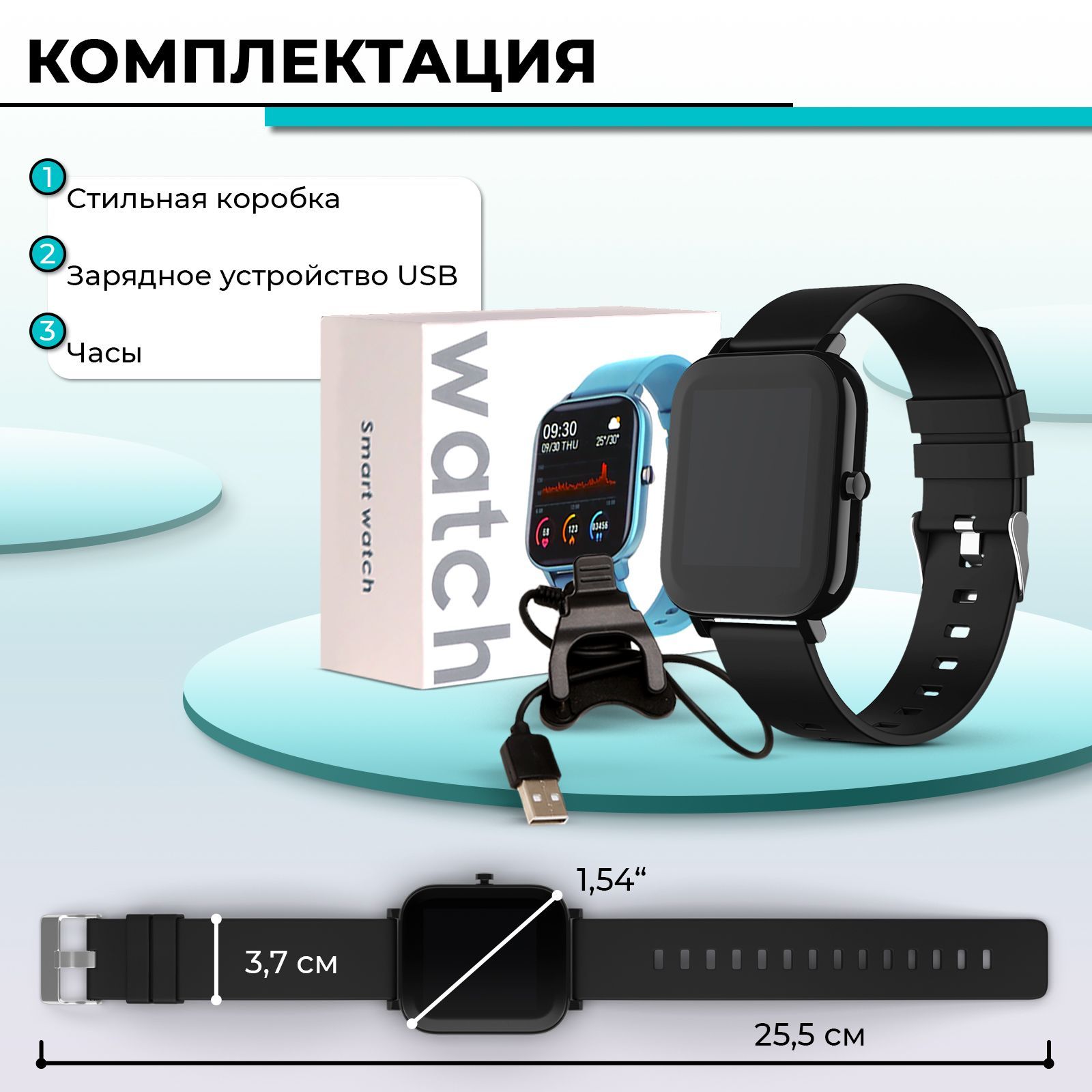 Смарт часы; зарядное устройство; инструкция; упаковка
