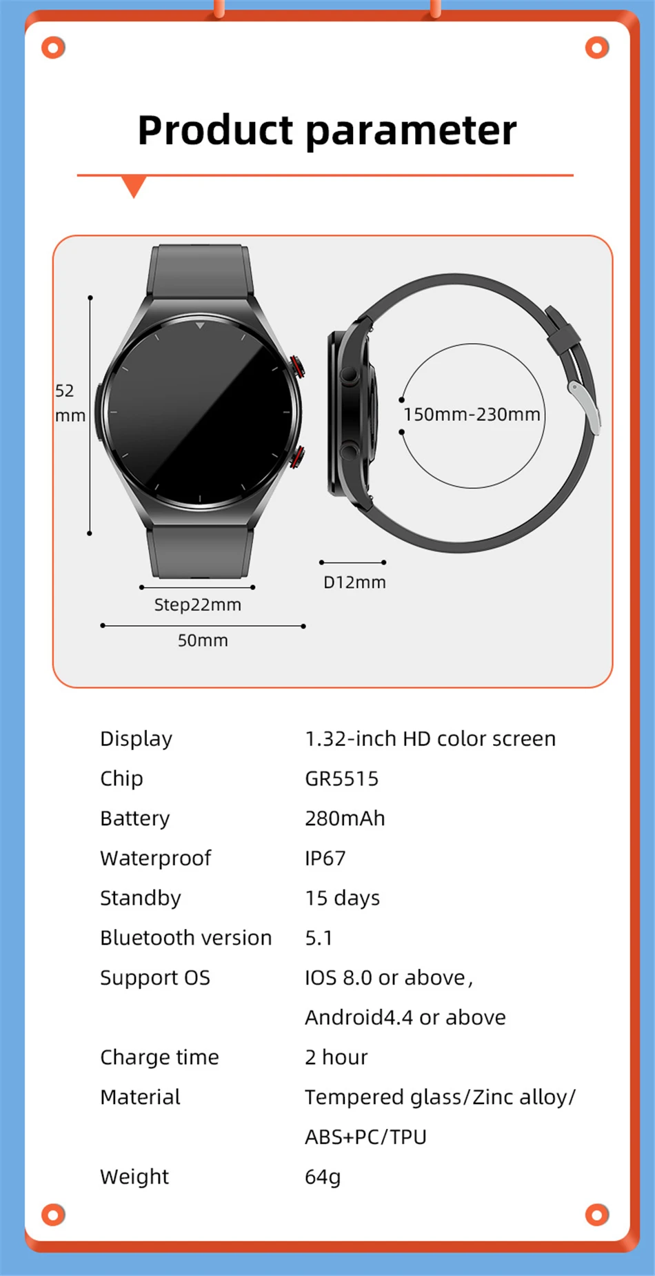 Дисплей: закаленное стекло + IPS HD 1,3 дюйма 240*240 точек на дюйм