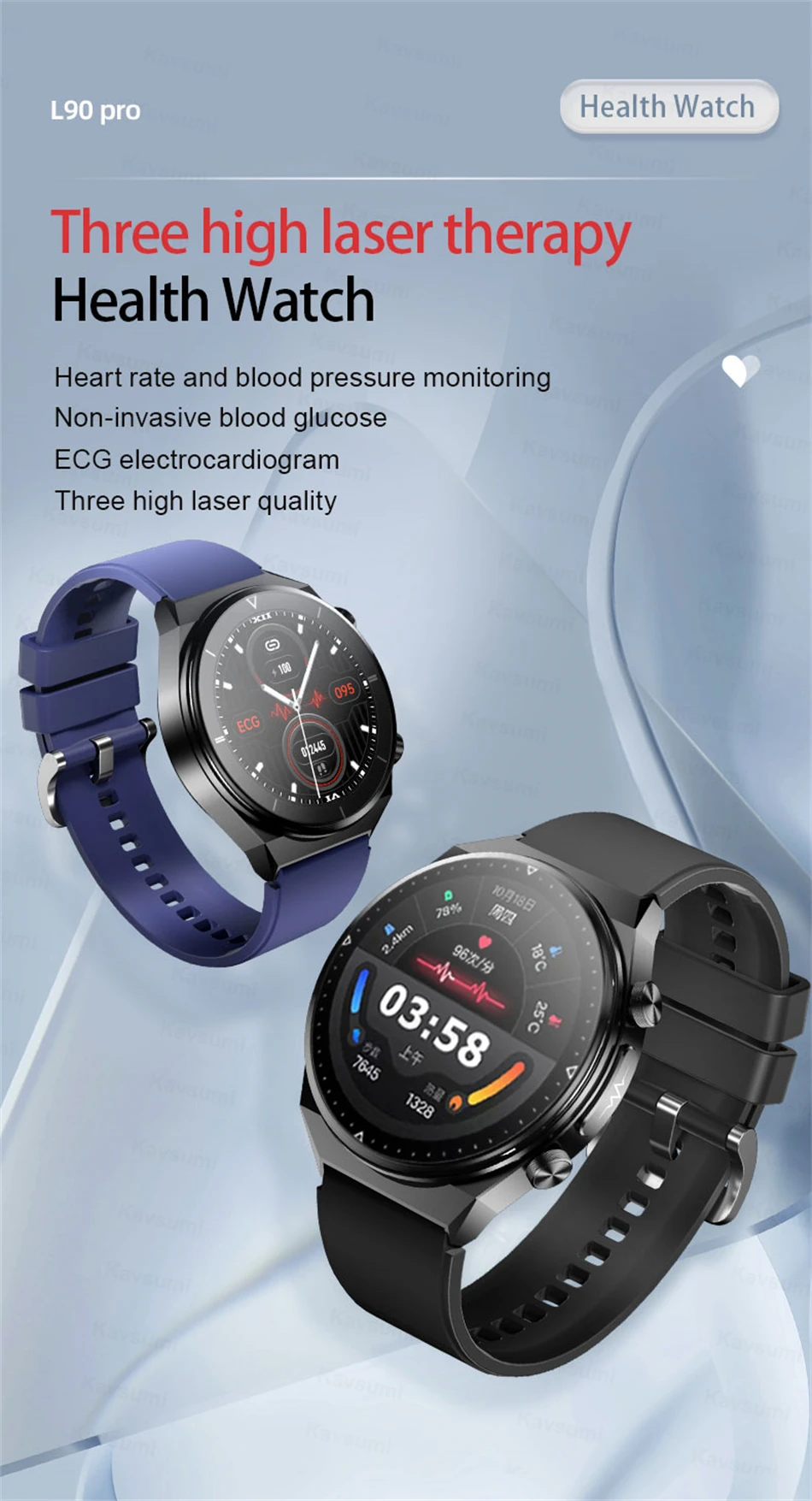 Смарт-часы с ЭКГ + ППГ, измерение уровня сахара в крови, липидов, артериального давления, температуры тела, мониторинг здоровья