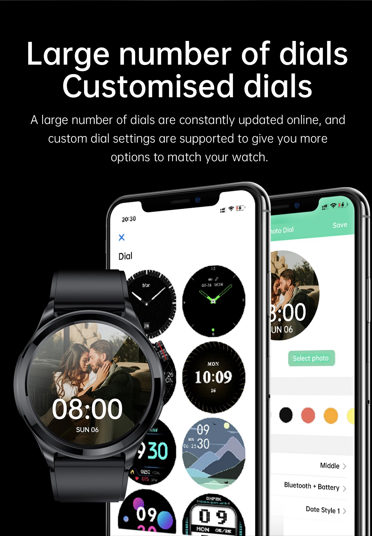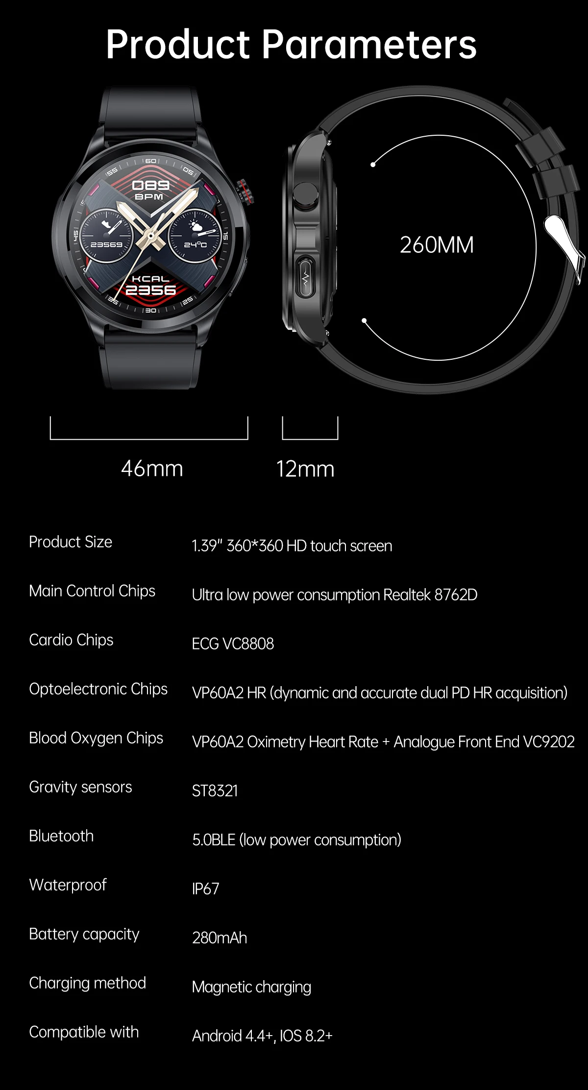 Смарт-часы с функцией измерения ЭКГ + ППГ, Bluetooth, 360*360