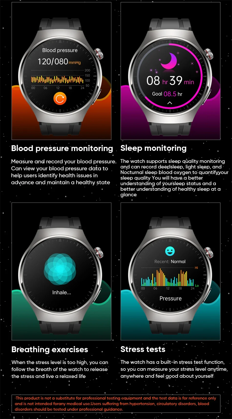 4. Мониторинг температуры тела, неинвазивного уровня глюкозы в крови, сна, артериального давления, частоты сердечных сокращений, стресса и т. Д.»