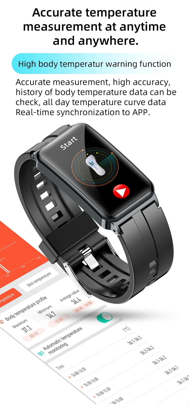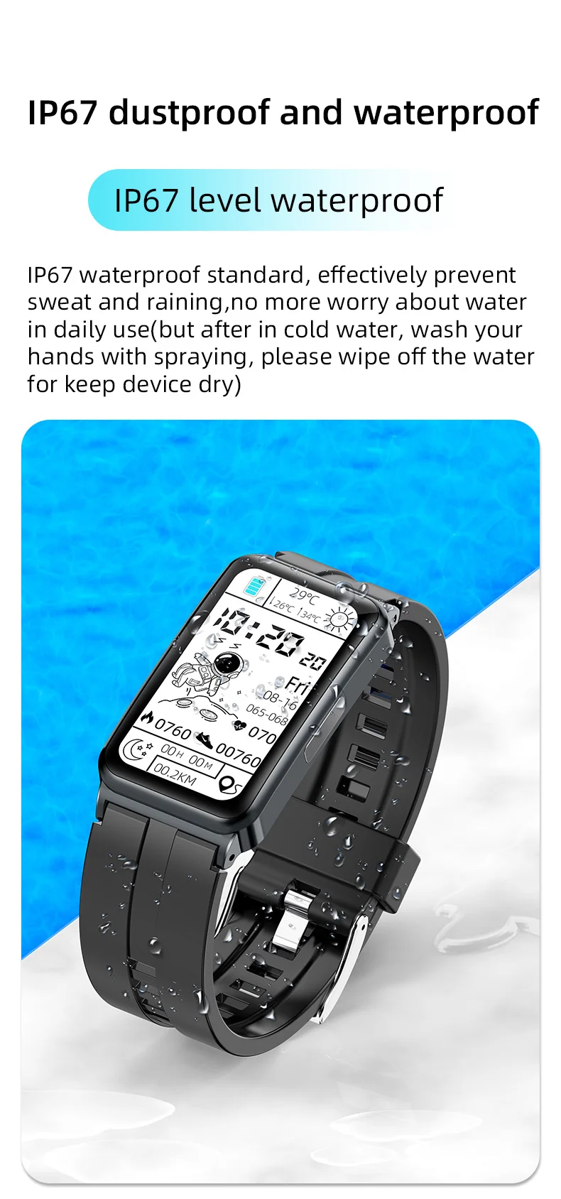 NOTE FOR Waterproof-- Do not wear it for swimming or bathing, Do not put the watch in a high-temperature water vapor environment, or the watch will be damaged.