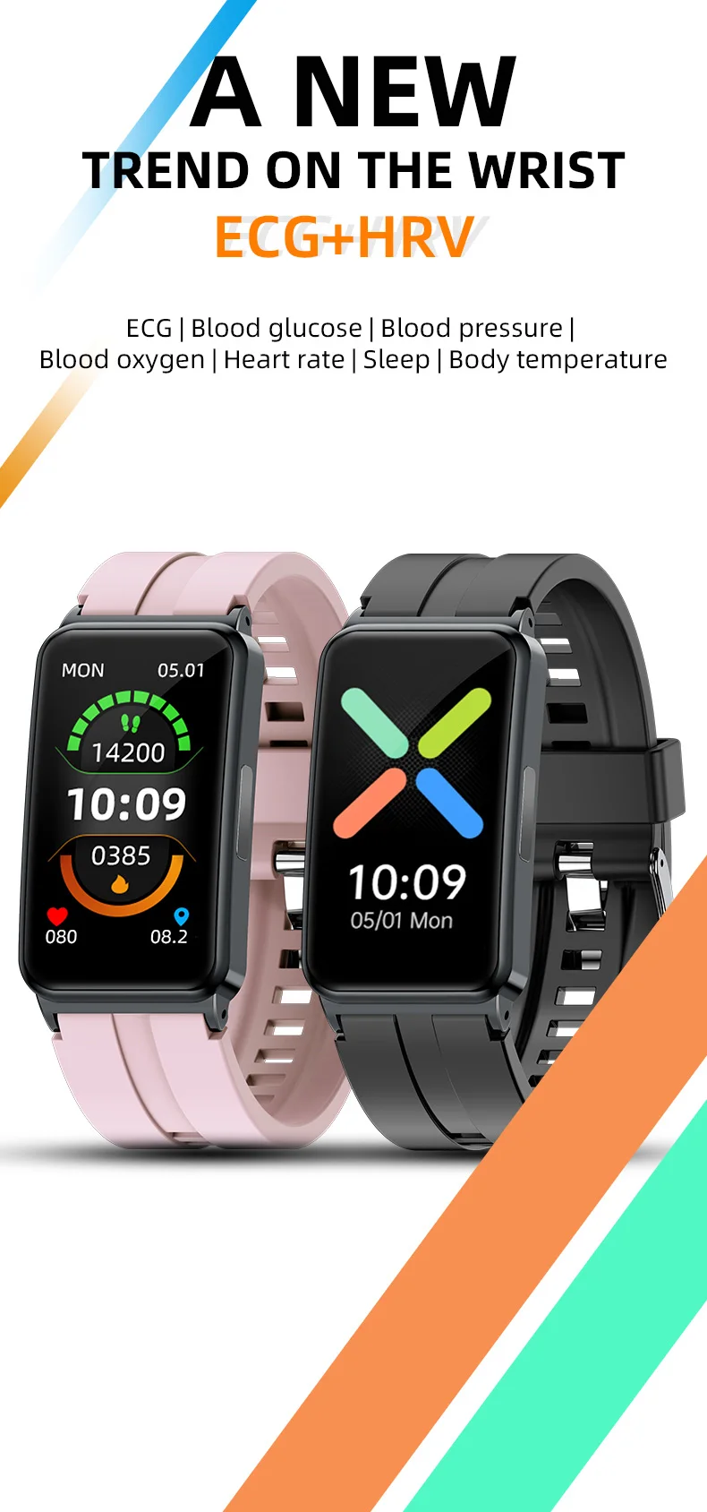 *Multiple dials, ECG electrocardiogram,measure blood pressure, blood sugar, blood oxygen, heart rate, body temperature,Sleep monitoring