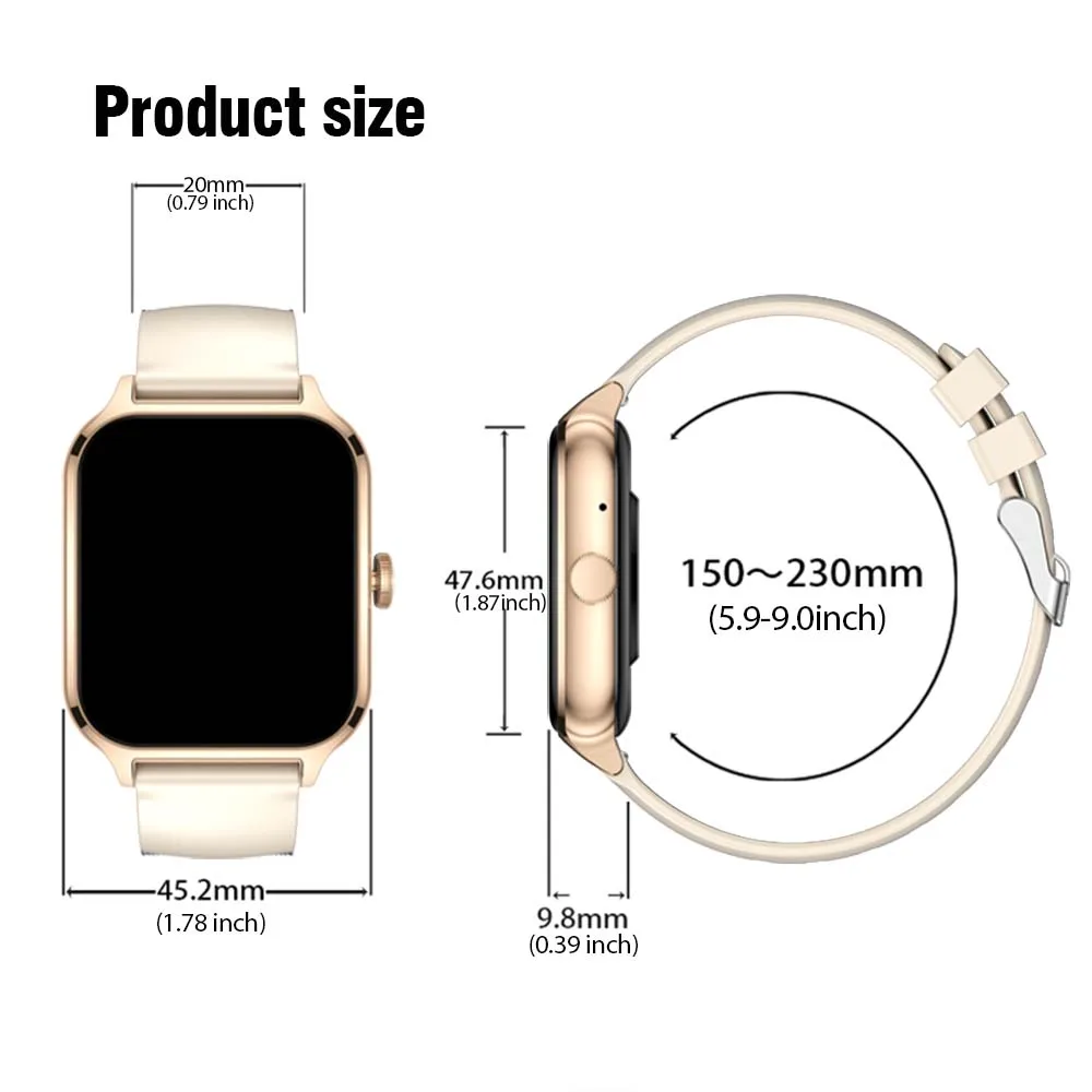 • Квадратная форма экрана :Квадратная форма экрана умных часов придает элегантный и современный вид, повышая коэффициент вашего стиля.