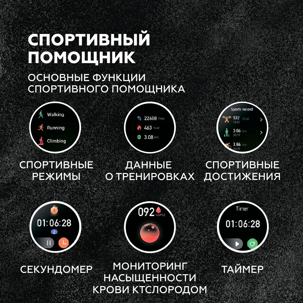 Встроенные датчики: GPS-трекер, Датчик артериального давления, Датчик движения, Шагомер, Датчик уровня кислорода в крови